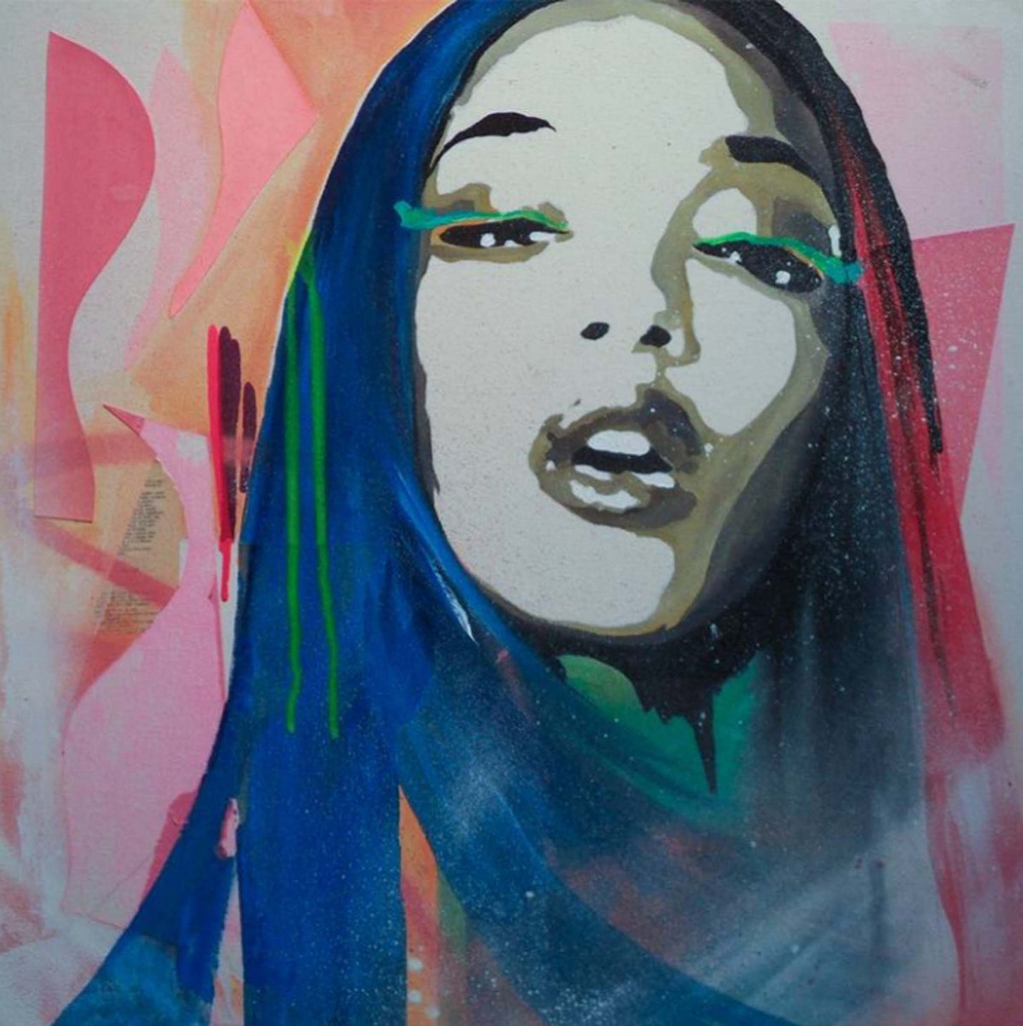 Aaron Lee creates fascinating interpretations of popular culture with sophisticated and aesthetically beautiful execution of expressive yet refined painterly techniques. He successfully pulls off fine art painting with graphic design elements, an achievement few artists truly possess. Pop art may sometimes come off as flashy and superficial but Aaron respects and presents the art form with a sense of serious dignity through a clever combination of abstract expressionism, magazine formatted design, and intelligent application of color relationships which seem to flow smoothly and effortlessly. With a bold body of work and knack for fashionable storytelling, Aaron Lee breathes life into contemporary portrait painting.