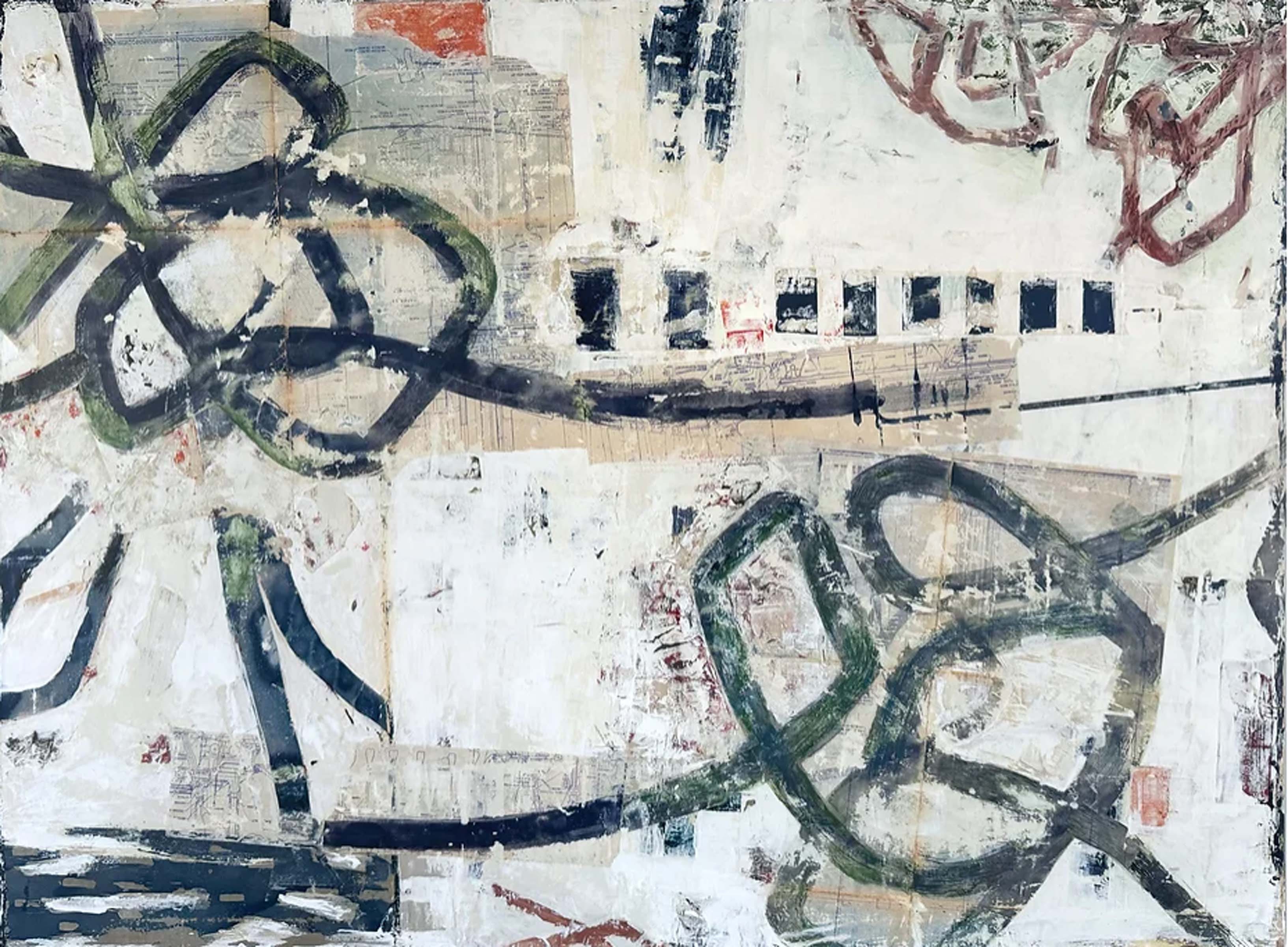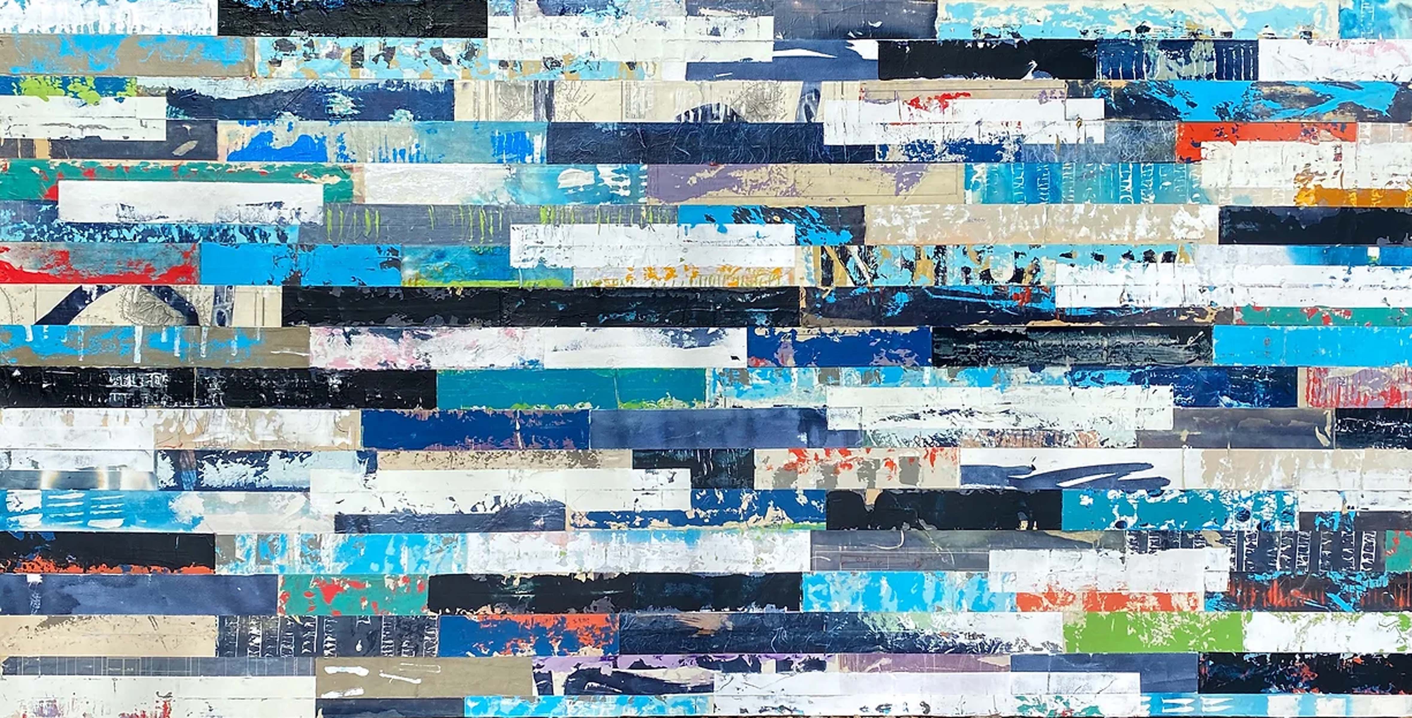 Adam Collier Noel presents works which reflect upon the flatness of the paint by using smears and textured layers. The paintings may come off as vintage and build upon color field painting of the 1970’s, abstract expressionism of the 1950’s, and pop art from the 1960’s. Pop art aesthetics can be found in the use of texts, numbers, and collaged found paper, while color field influences could be found in the almost monochromatic execution of some of the pieces along with patterned color, while abstract expressionism becomes reflected through the non-objectivity and erratic palette knife work in the art. With a sense of intuition and relationship with the paint and surface of the canvas, Adam Collier Noel creates presentations of deep contemporary aesthetics and integrative design principles.