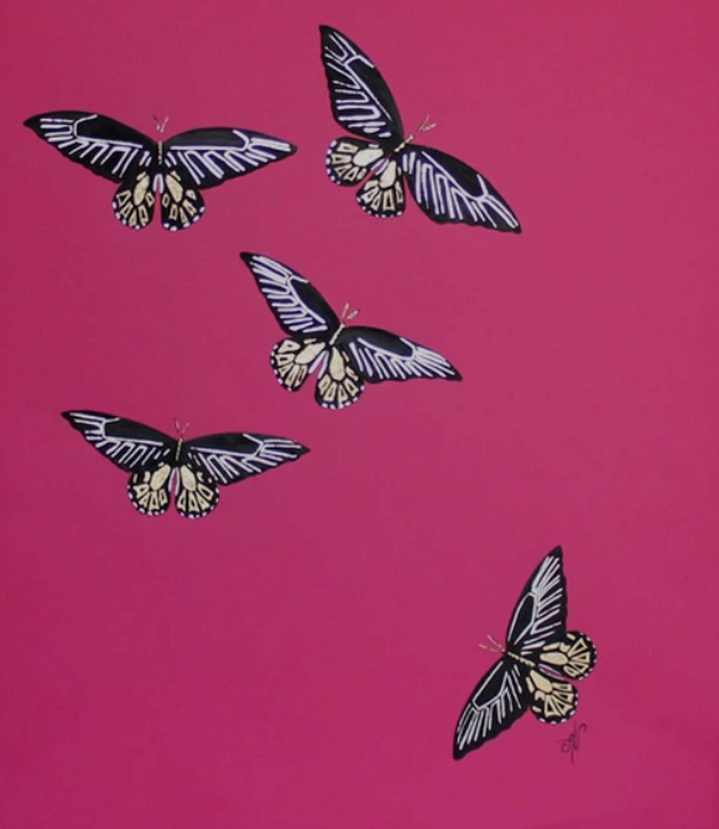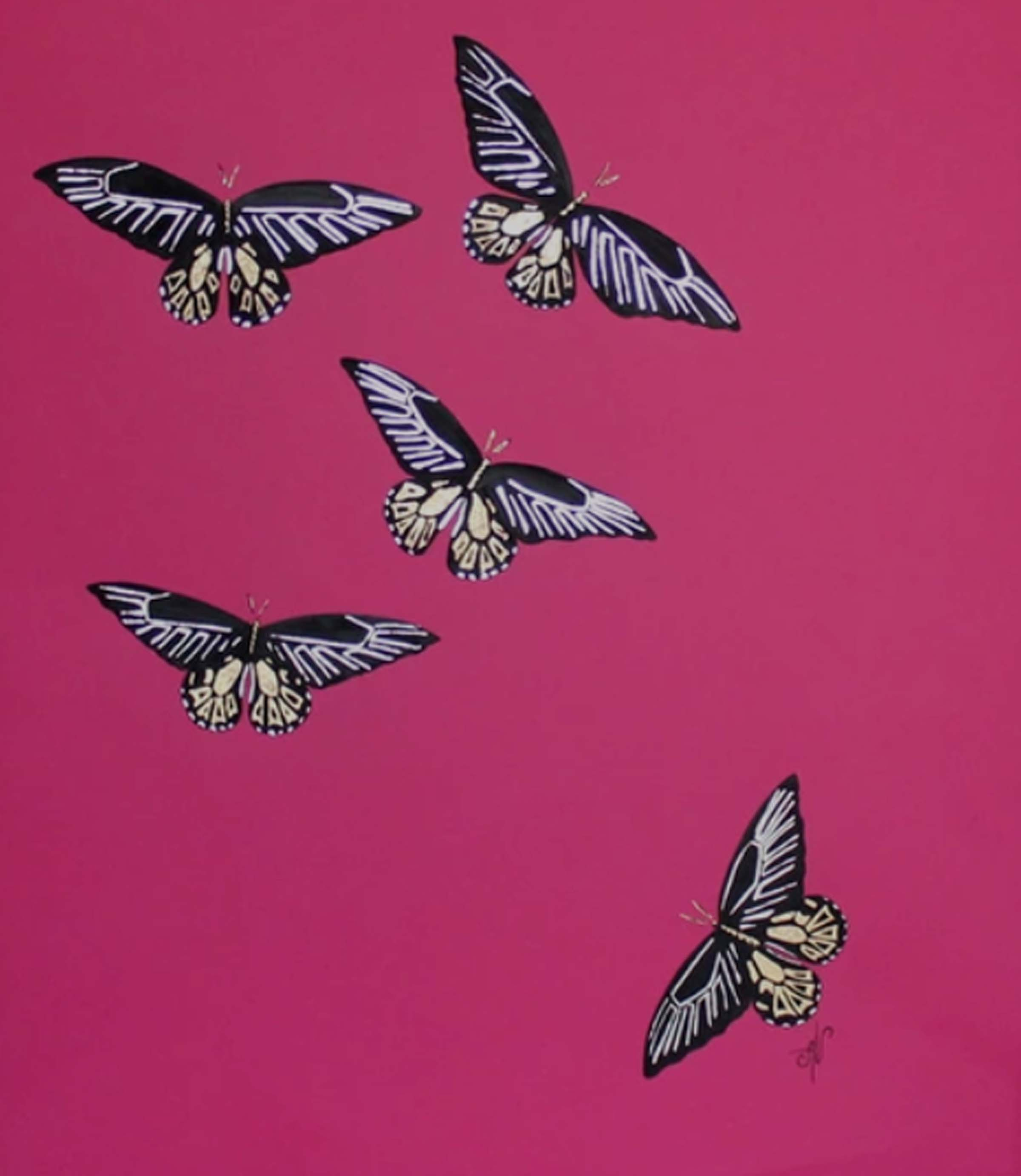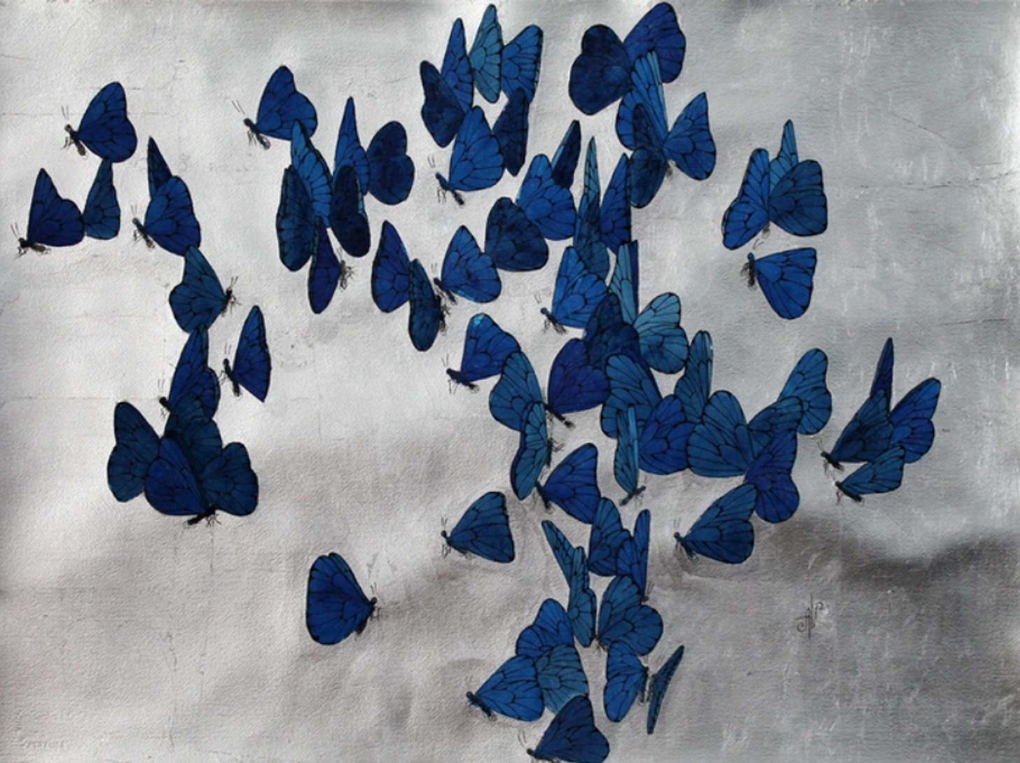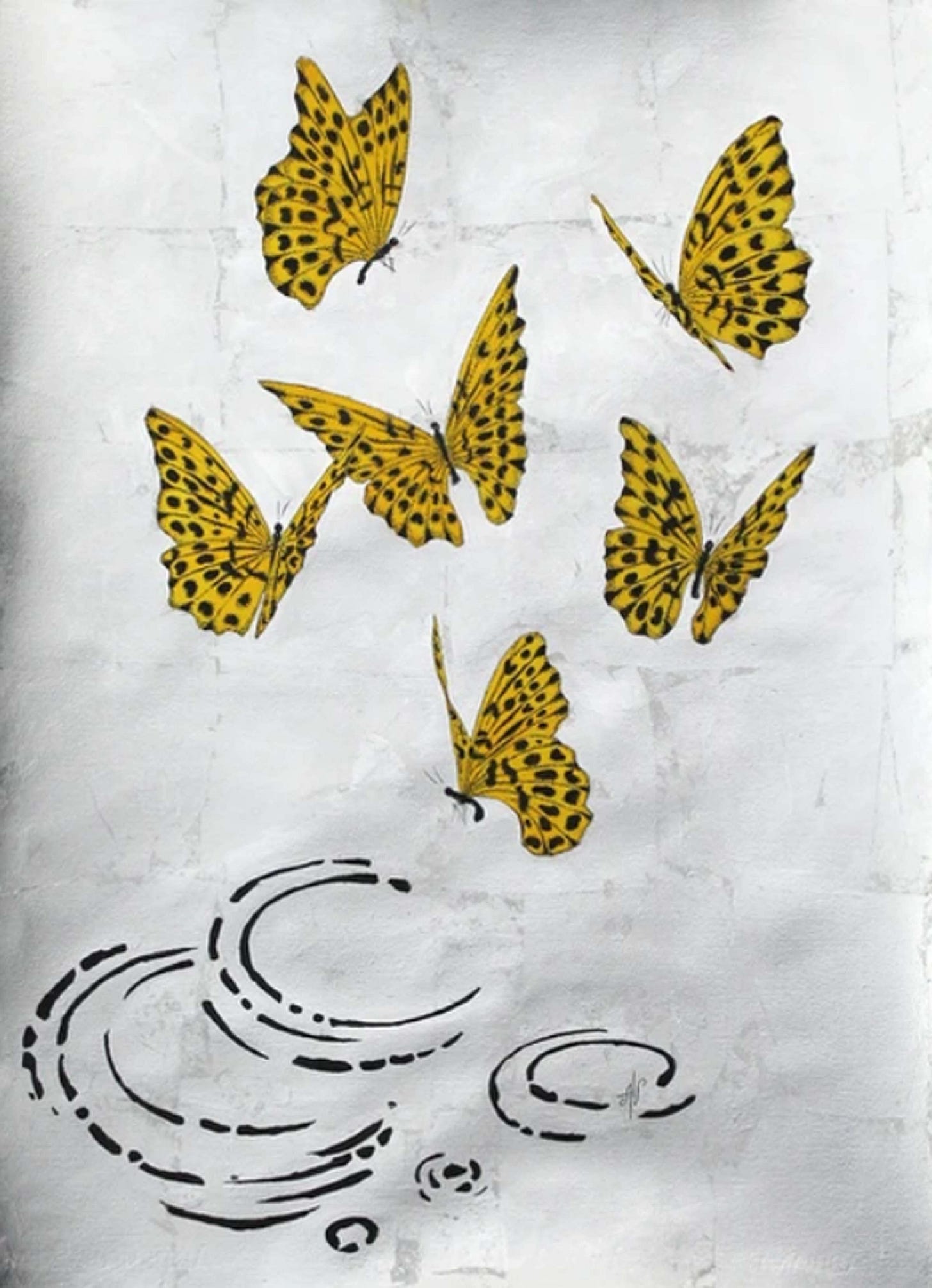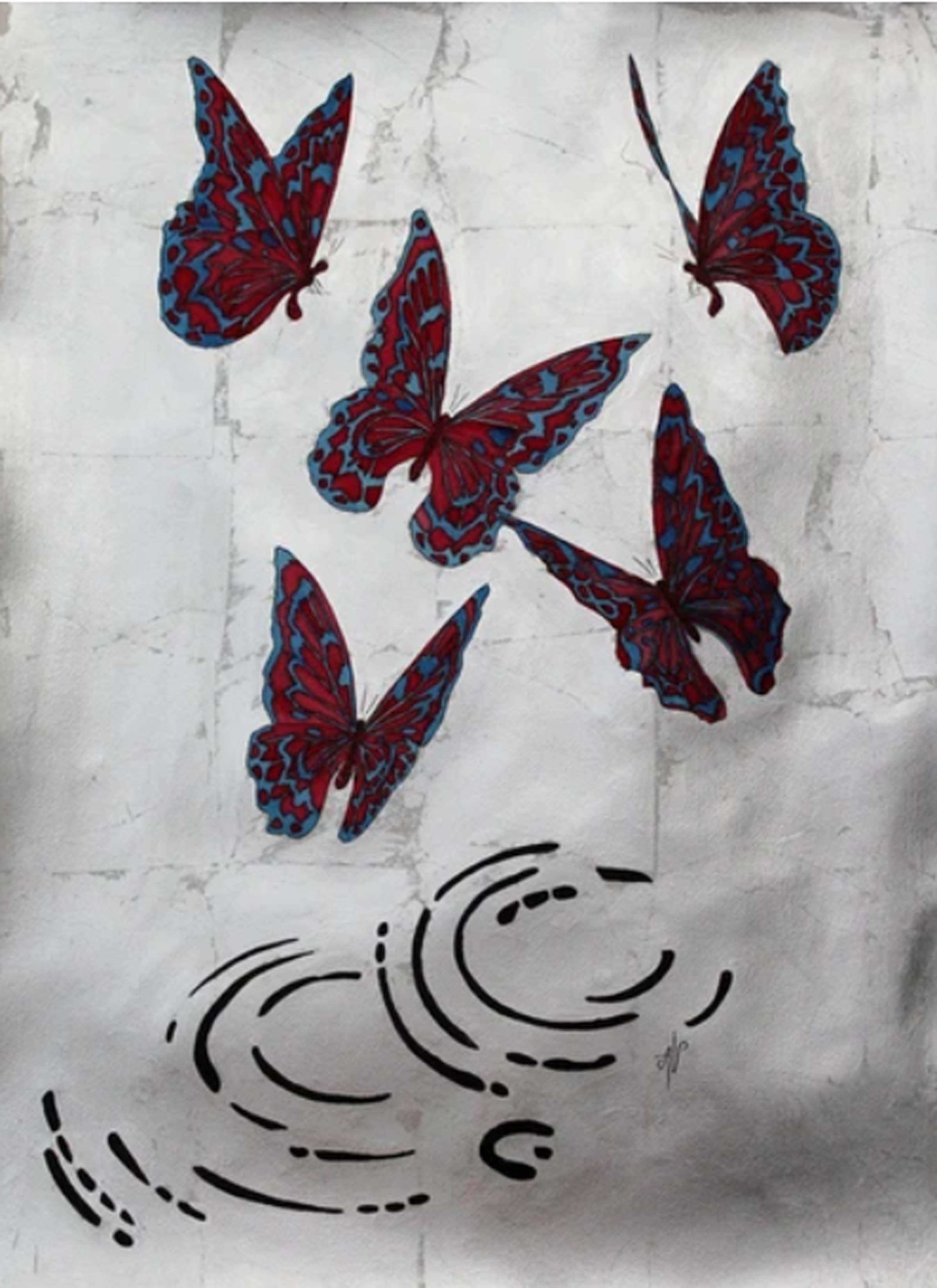 Alena Vavilina is a mixed media artist who has exhibited extensively internationally including in Europe, North America, South America, Southeast Asia, and the Middle East. She is represented by Gallery Artistry in Vienna, Austria, ART WEME Contemporary Gallery in Kuala Lumpur, Malaysia, and IAM Gallery in Abu Dhabi, United Arab Emirates. Alena participates in international art fairs on a regular basis such as Art Basel, Miami, Carrousel du Louvre in Paris, and Art Expo Malaysia. Although Alena has worked in a variety of mediums and subject matter, we will be focusing on her most recent work which includes mixed media works on paper with the theme of butterflies.