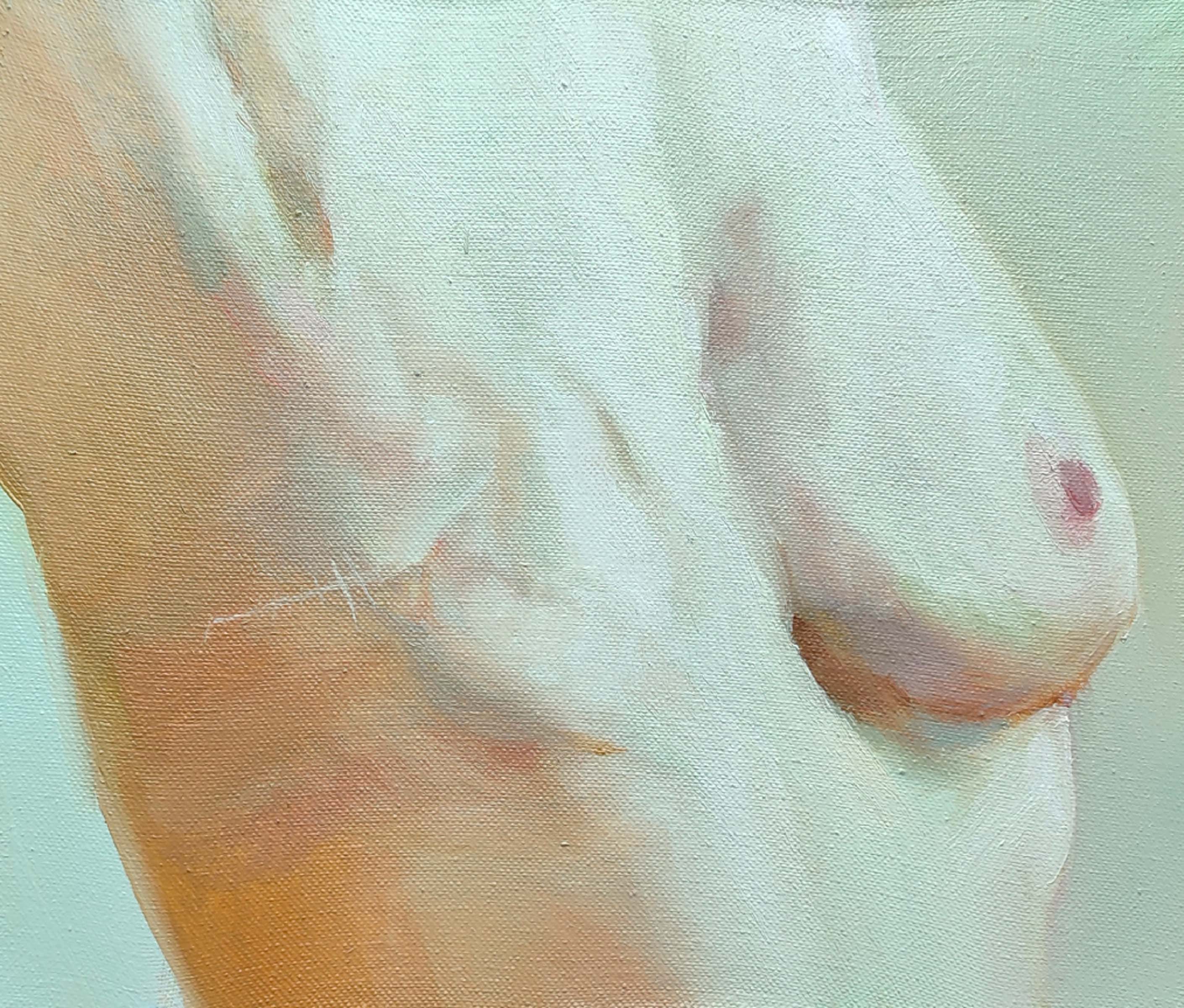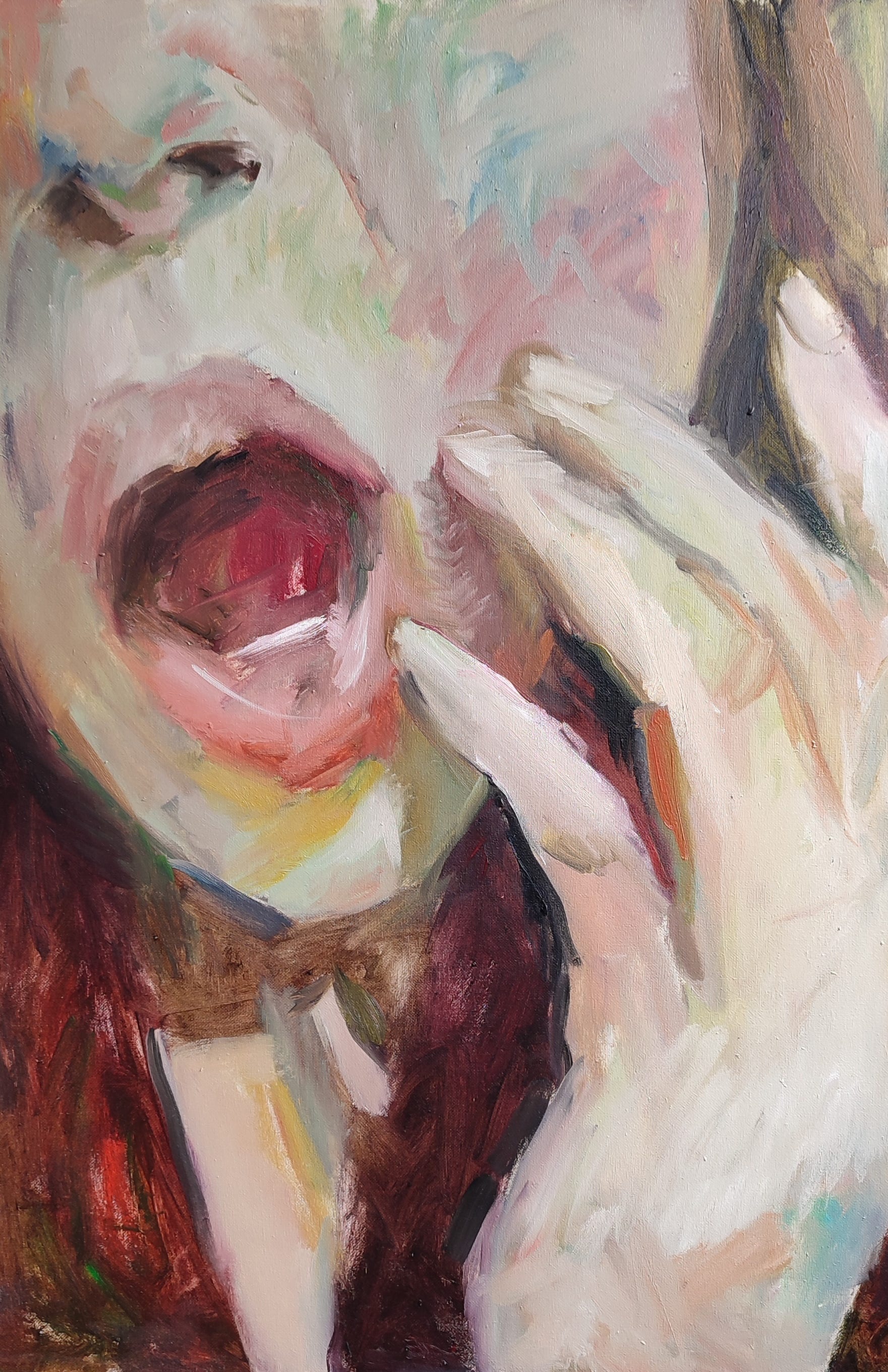 Alexa Kolos is a figurative and anatomical painter who has exhibited mainly in Ukraine and also in Germany. Recent solo exhibitions include the National Museum Kiev Art Gallery, Art Center Maysternya, both in Ukraine, and a feature at Dolina Gallery in Germany. She has participated in an art residency at Goethe-Institute and has been published by Artist Portfolio Magazine as well as Blue Magazine. Alexa’s paintings are often conceptual in nature and typically involve unflattering portraiture or portions of anatomy.