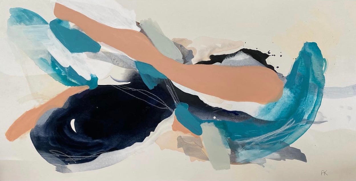 Allie Kell is an emerging artist who has participated in various pop up shows in Central Canada. As a newcomer to the art scene, she has created a variety of abstract works which are earlier full of color and later full of neutral tones, black, and white. With vivid, lush brushstrokes and an eye for negative space, she infuses rhythm and a sense of playful dance throughout the surface.