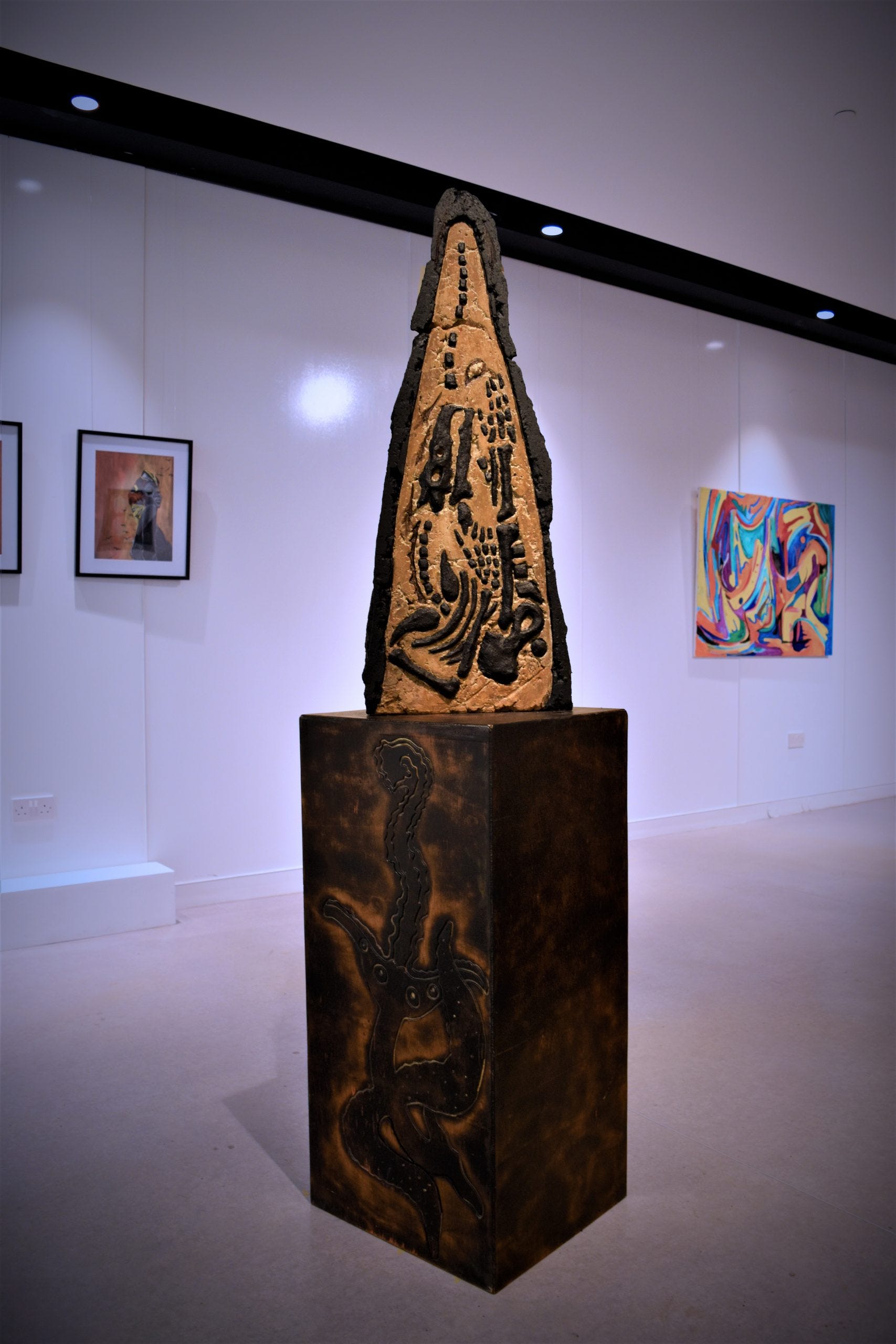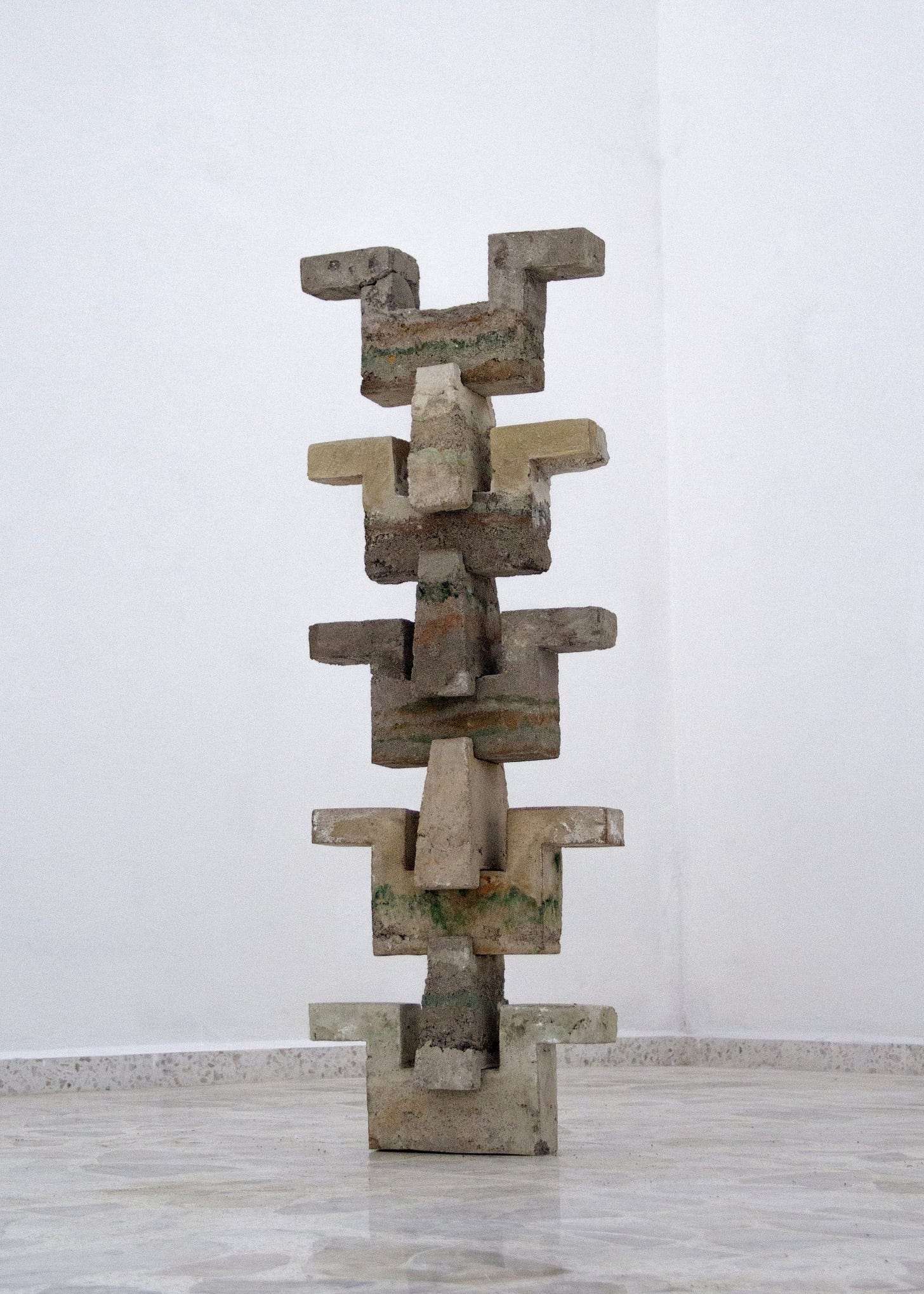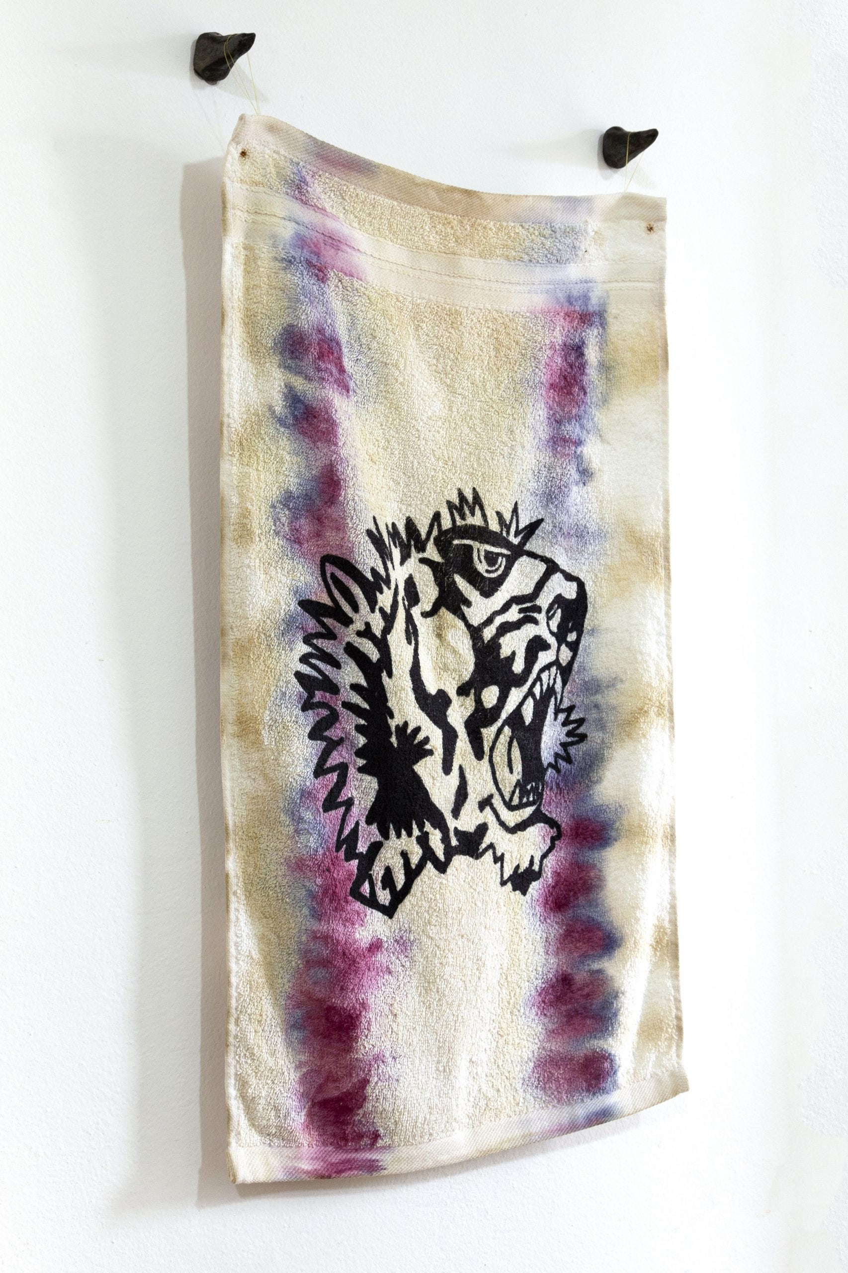 The works, both two- and three dimensional, have a tendency to portray angularity, asymmetry, and negative space. Recurring themes within the works reflect on the representation of tiger mascots and geometric influences from ancient Mesoamerican cultures. There remains a primal and ancestral quality of the works bridging the viewer towards an earlier era rich in representations of surface texture and ferocity. The paintings, sculptures, and installations are usually subdued into neutral and cool tones giving off a therapeutic aesthetic to the veneer. A recurring theme of large cats (which could be tigers or Mesoamerican jaguars) and representations of nature invoke a tribalist and naturalist spirit harkening towards eras and civilizations with spirited, warrior philosophies who have a direct relationship with the land they harvest, hunt, and sow.
