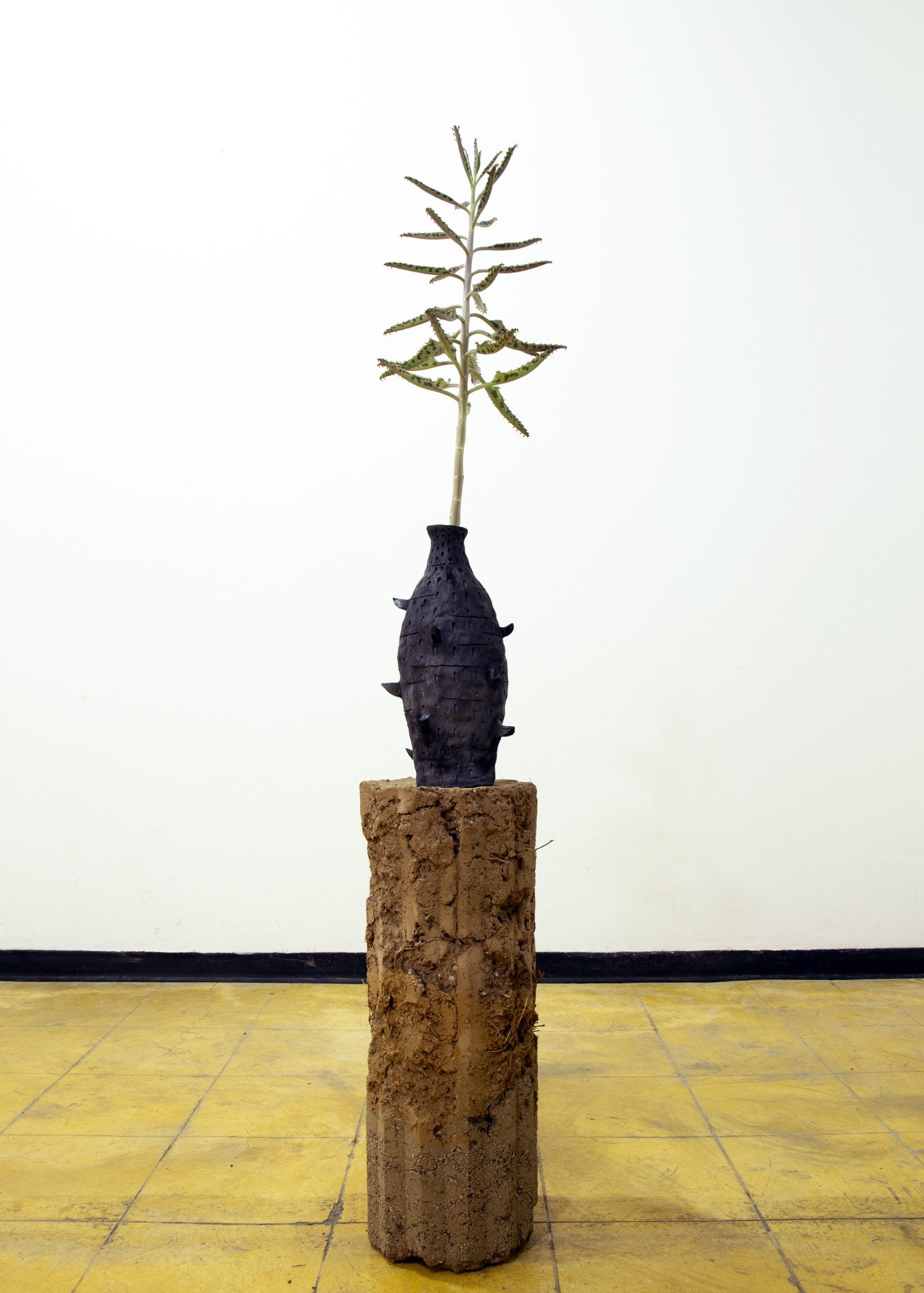 Do Flowers Always Dream of the Rain (pictured above) remains one of Ben’s most primal pieces. Clearly influenced by mesoamerican culture, the pottery installation with full earth mound stand and exotic foliage represents an alien interpretation of interior design aesthetics. The vase, which appears more fantasy inspired than historically related, has spikes protruding from the asymmetrical form which appear like the barbs on the plant. A vastly earthy and natural installation which resembles the more aggressive forms of nature rather than the usual ornamental and smooth qualities of the natural world found in art.