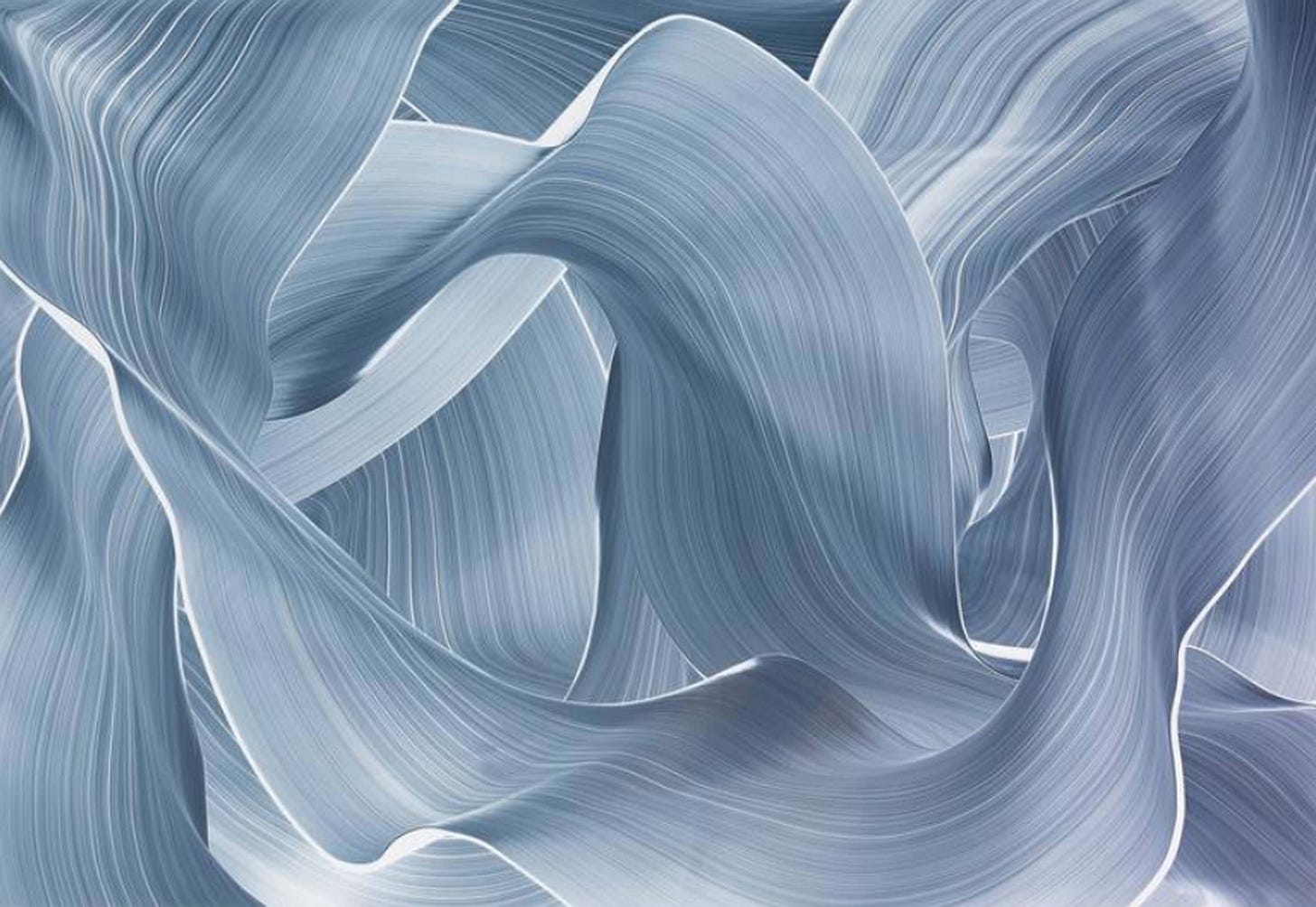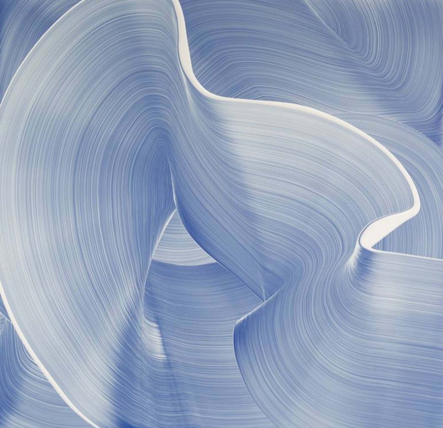 The paintings are executed with either oil or acrylic on luminous or metallic surfaces such as glass, plexiglass, and aluminum while his drawings are done with ink on paper. Perhaps the surfaces he paints on remains the reason for the pristine radiance across his compositions which leaves a reflective sheen. These surfaces also generally do not soak up material like canvas, instead, the paint streaks across the planes of the glass, plexiglass, or aluminum. Like a rhythmic dance and classical music, the fabric-like forms in the paintings flow naturally without tension or friction.