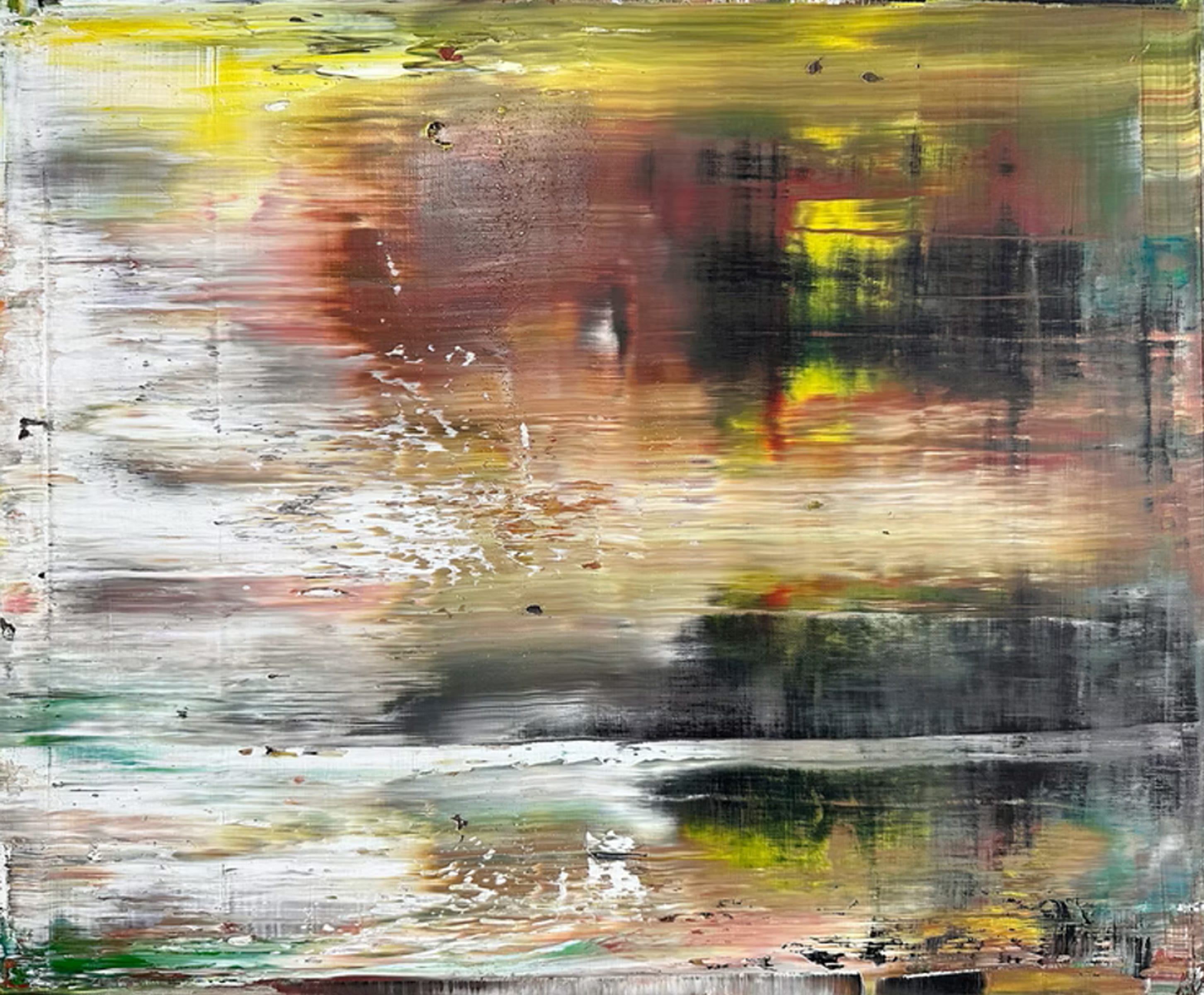 The abstract paintings in Guido Lötscher’s portfolio are a study in complex surfaces which reveal technological aesthetics and may even resemble digitized screens. Modernists and abstract expressionists from the 20th century were focused on the aesthetic of the paint as well as surface. Guido, on the other hand, reveals contemporary inclinations through smeared illusions and distortions, like a Rorschach test we as the viewer may interpret various scenes from his planes of paint, such an electrical lightning storm out on the beach or a haze filled sfumato engulfing a forest.