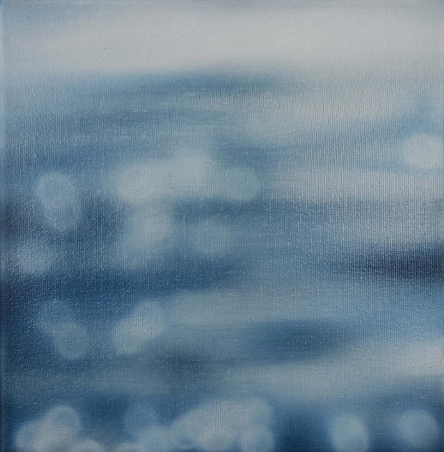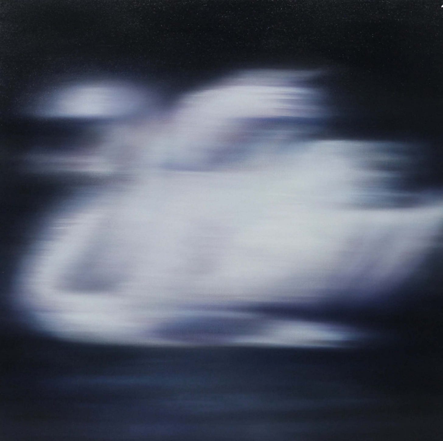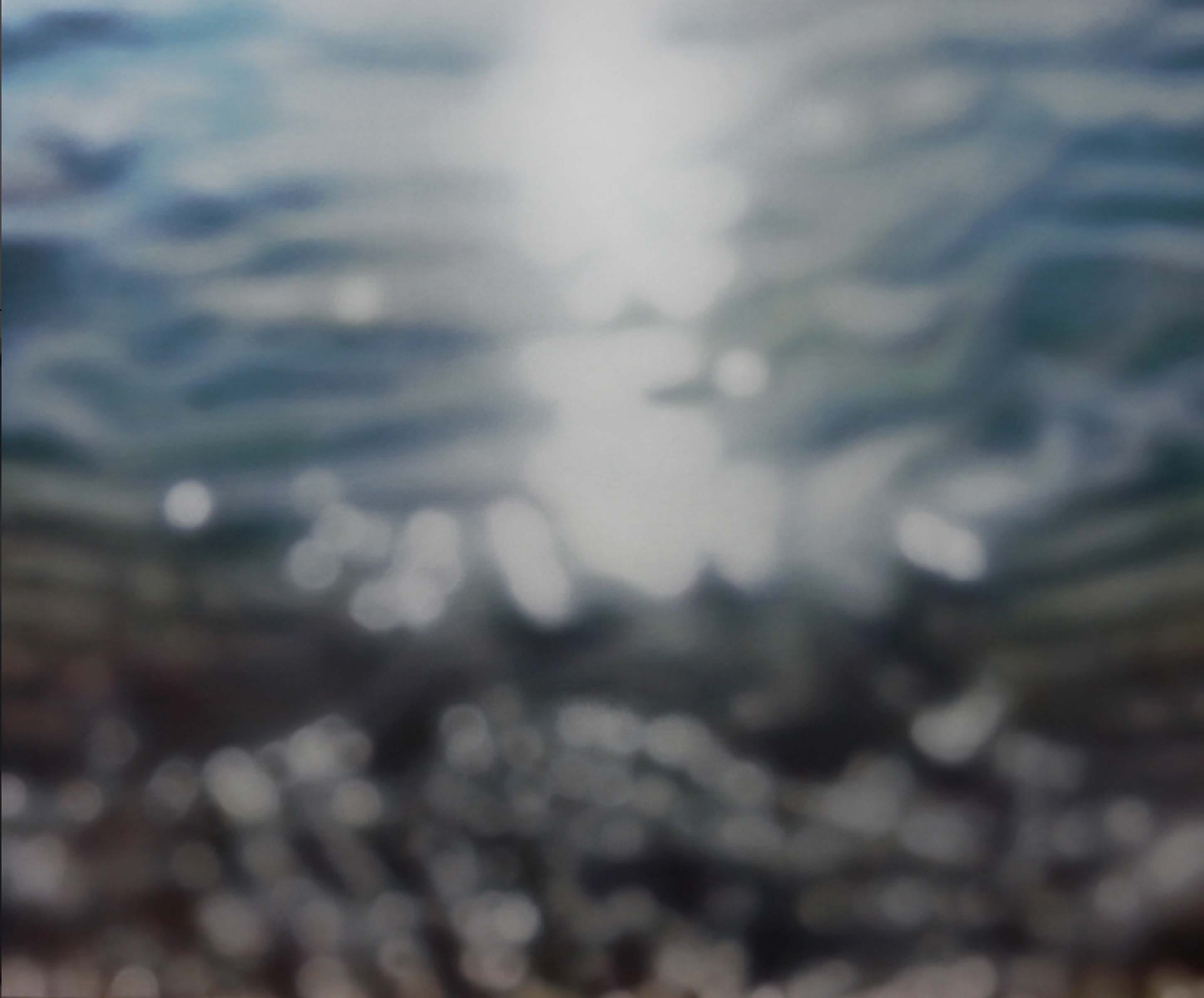 The oil paintings range in size from large scale to intimately small and depict specific subject matter which reflect light such as the representation of sunlight through forests, the surface of the ocean shore, swans, or chandeliers. Despite being photorealistic and almost monochromatic, Laura’s paintings portrays her subjects as unrecognizable, distorted by blurs and intense focus of directed illumination. Unlike the works of Gehart Richter, who centers his attention on photorealistic blurred oil paintings, Laura distorts her subjects to the point of being almost totally abstract.
