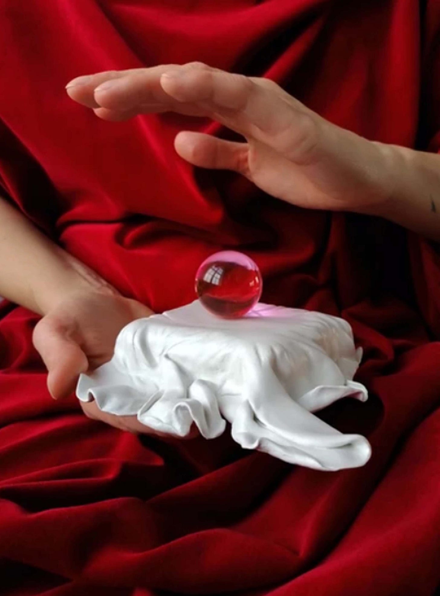 The commonality in these installation and performative works consists of creating an avant-garde which pushes physical, spiritual, and emotional boundaries. Deeply conceptual and provocative, the art contains a rebellious nature and sometimes a state of confusion such as her Diffusio performance where we cannot tell whether she paints public walls with water stains or attempts to wash away graffiti. In any case, the work remains within a more sophisticated realm of philosophy rather than typical sociological trends. The art comes from a plane of fragmentation and sacralization of memories and senses, by using incense-laced odors and creating shrines and relics to contemporary concepts of desolation, materialism, and etymology. In essence, the work remains a statement on reminiscence and ruminations regarding universal human concepts such as death, envy, love, and miracles. Her work deals with concepts in a subtle manner, she forces the viewer to investigate the art in order to create personal reflections on purpose.