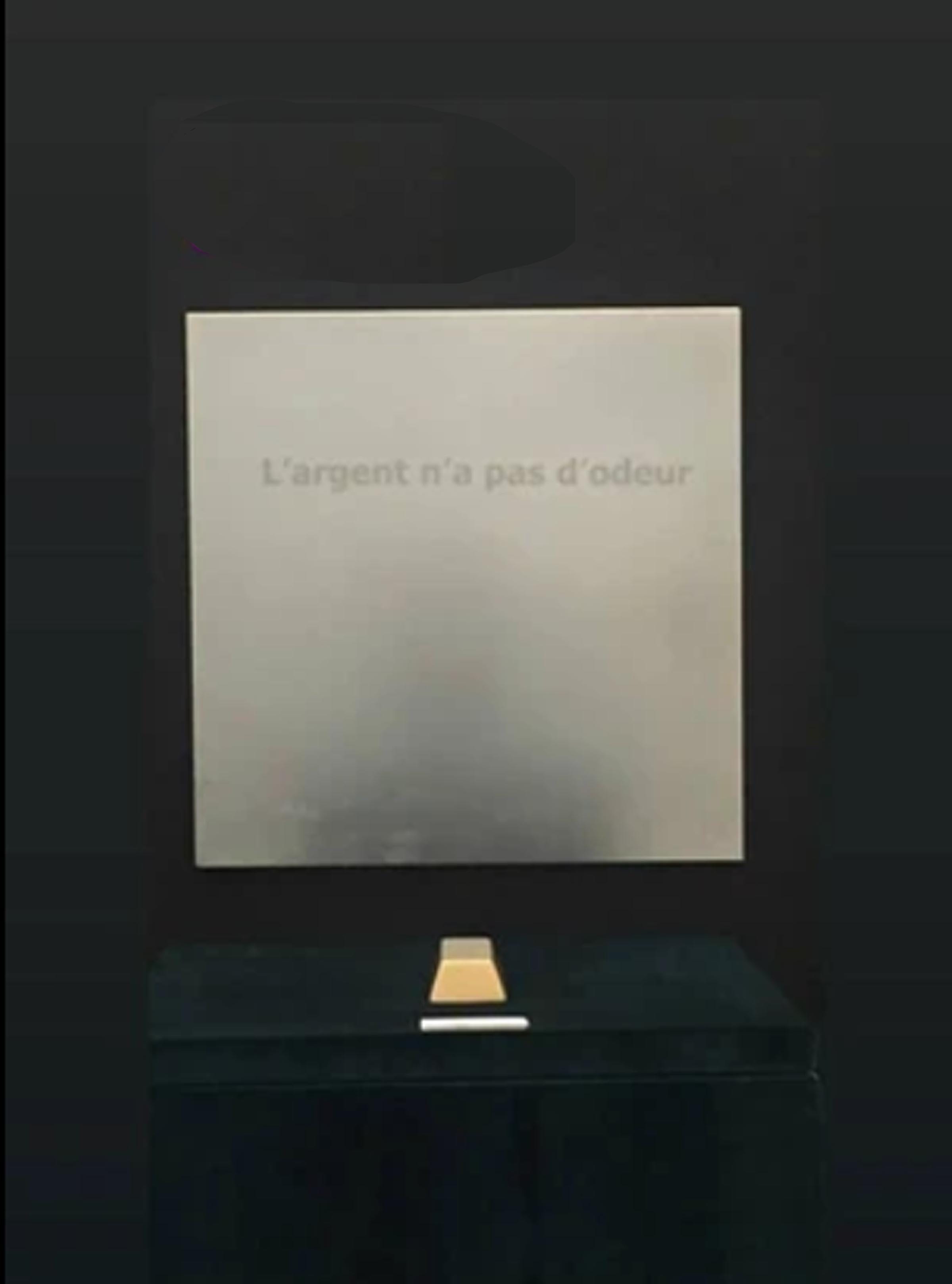 The body of work offers a variety of approaches to deconstructing institutional notions. Lisa’s most recent installations invent contemporary shrines to concepts of vacantness and in regards to ancient gods and titans with spiritually-laced smells of fresh incense. While other pieces such as the Joseph’s Dreams series reflect studies in texture of what appears to be fungus or bacterial samples or replications of microbiology carefully collected into a format. Her fascinating performances revolve around actors interacting with white paint against a wall of text in the White Walls series and violent motions with an inflated plastic object in Emotions. Other installations portray platinum-like pristine panels etched with the words Money Doesn’t Stink in various languages with a gold bullion bar on a pedestal facing the panels.