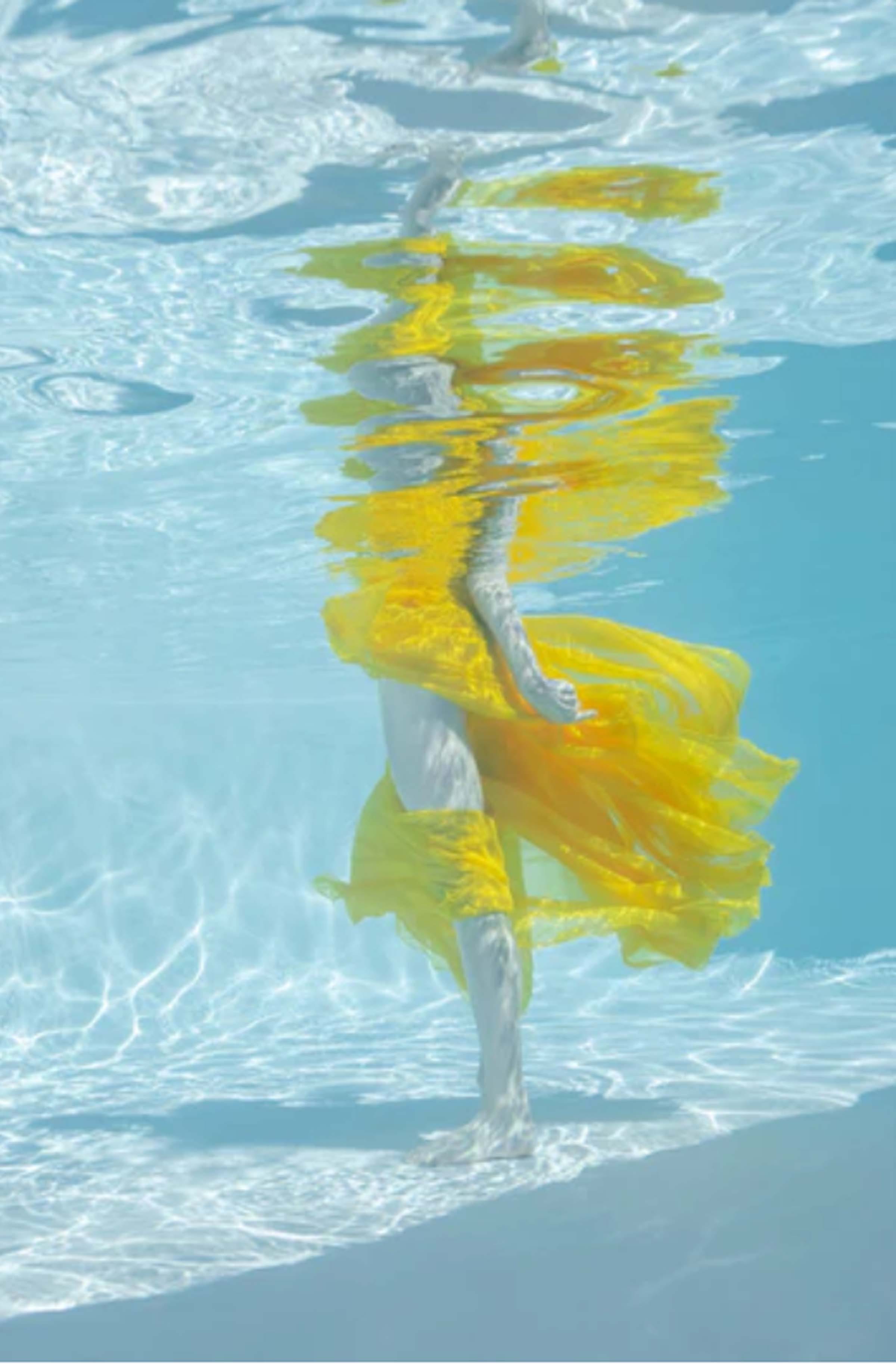 With a sense of grand theatrics, Mallory Morrison creates her own personal version of high aesthetics through an unconventional technique of photographing underwater. These imposing compositions communicate contemporary aesthetics through capturing motion in a frozen state amidst a tension of empty space. Like a filmmaker, Mallory engages the viewer with grandeur by creating characters who interact with their surroundings as if to communicate with others. Free flowing and nuanced, these beautiful photographs convey a sense of heightened awareness and appreciation towards natural interactions.