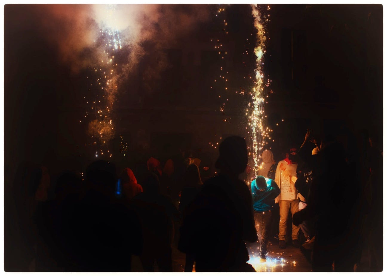 From sparks flying in the air at a rally to torch-wielding men dressed as minotaurs to wild Spanish horses and silhouetted figures standing on top of infrastructure, Martin’s imagery never proves to be typical or familiar. His landscapes are equally as thrilling as his figurative depictions as they often capture remote, desolate locations reflecting urban or rural decay as well as natural wonders which evoke poetic concepts. These thoughtful photographs are carefully captured and represent a photographer who works in both digital and format photography but always carries with him an analog eye and experience.