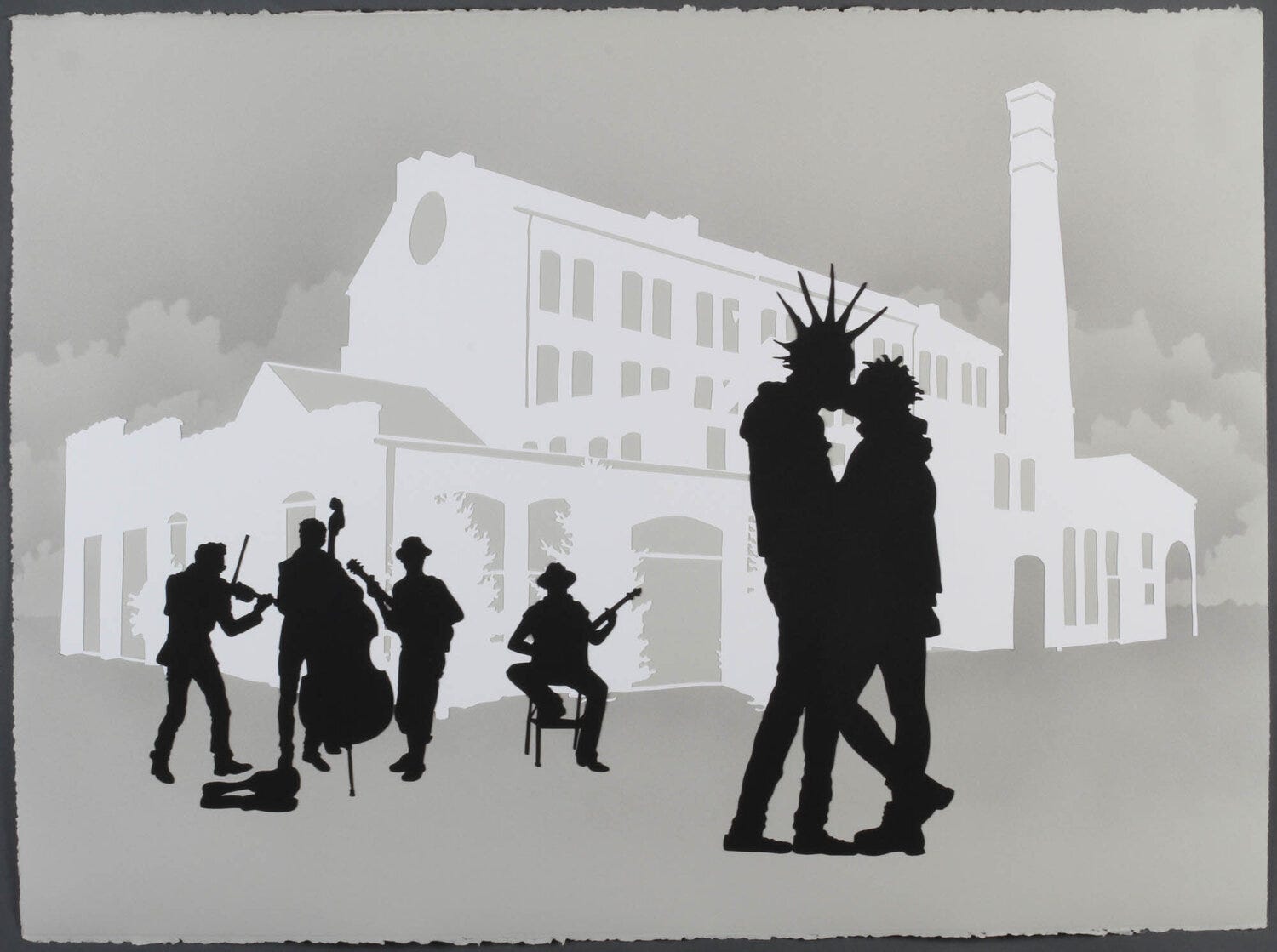 Often containing a retro style and sense of urban grit, Matt Haffner’s paintings appear more like printmaking prints rather than traditional surface painting. With a pristine layout, the paintings and works on paper appear to be executed with either stenciling or use of a projector. With deep shadows and silhouettes, the contrast remains high with subtle variations in the background usually containing whites and neutral tones. Usually figurative, the paintings reveal reflections of character through moments of theatrics with harsh lighting and gritty, dirty, and rustic environments. His photography usually depicts low-brow Southern culture and scenery with journalistic angles and tendencies. The photos reveal social and economic decay with a sense of aging environments in need of development.