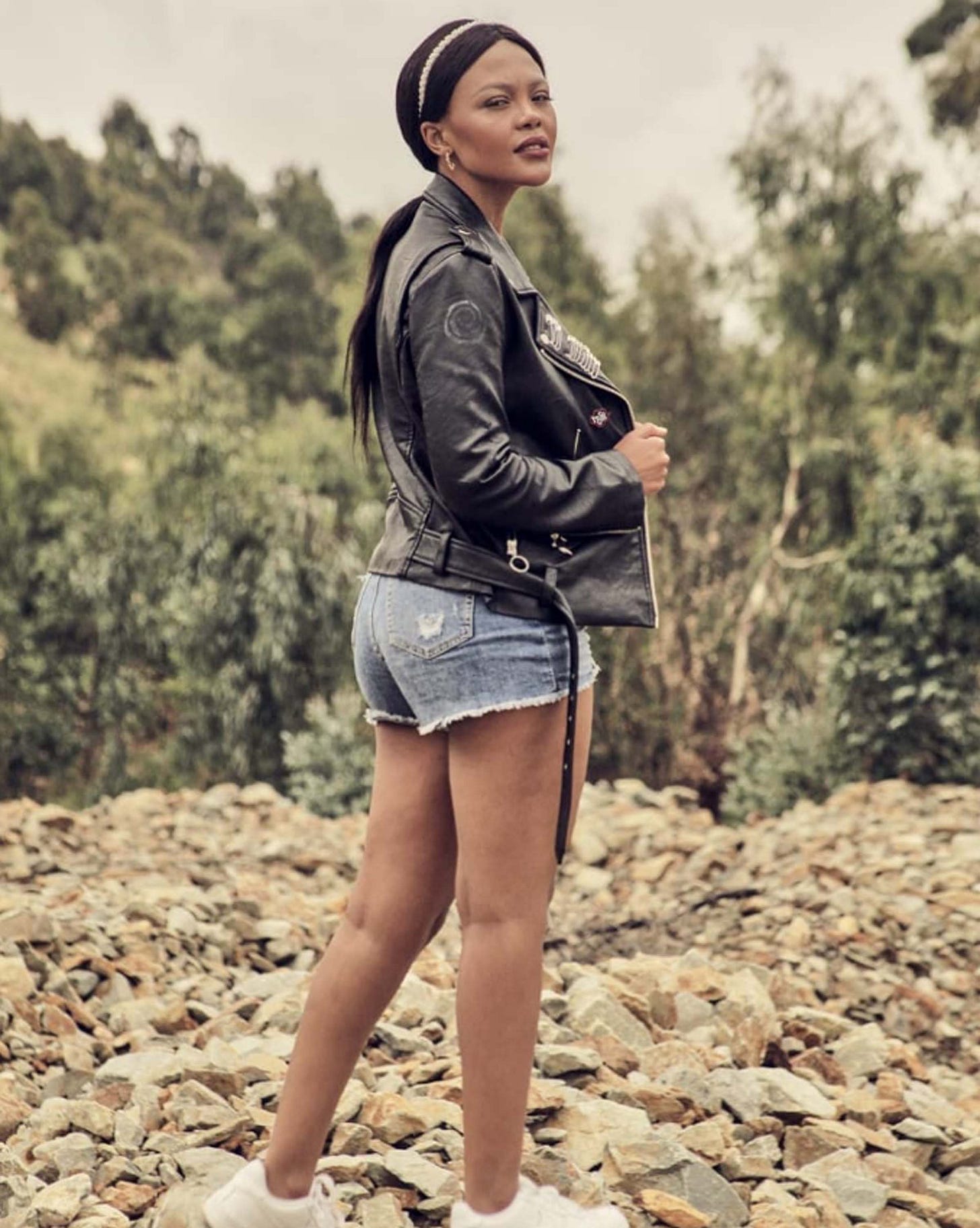 One of his most interesting photographs contains a series called Muse which portrays a woman wearing nothing more than an open leather jacket and torn jean shorts. She is a sensual character with neutral lipstick, gold earrings, and a decorative hair braid. The woman stands above a setting which appears to be a rugged hillside staring at the viewer with a squint or in the distance. The series seems like a cross between fashion photography and performance art with how she is portrayed with her accessories and the interaction she has with a rough environment.