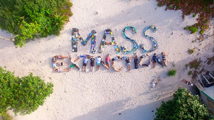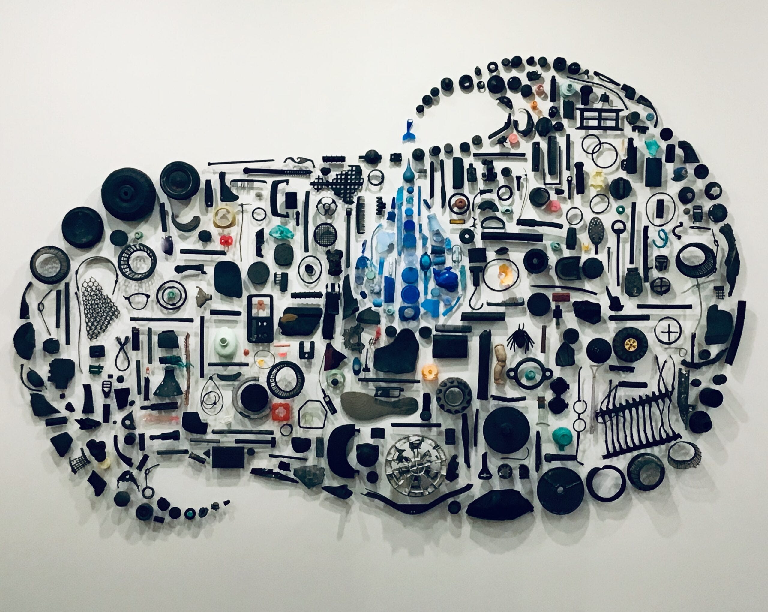 The various installations, photographs, and works on film involve assemblages of found discardable objects, in other words literal garbage, typically of plastic waste salvaged from the ocean or recycled polyester. Pam’s desire remains to raise awareness of pollutants in the ocean water through collective industrialization and lack of individual care. She typically creates fragmented sculptures which both directly and indirectly draw attention to the importance of ecology.