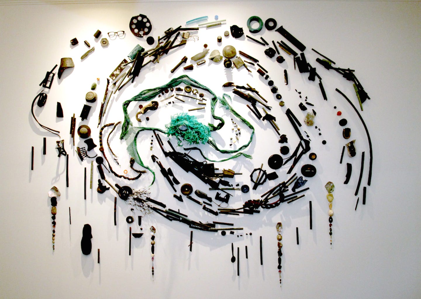 Although typically containing abstract depictions, the concept remains with the substance of the material sourced from removed plastic from the ocean. Pam brings awareness to our fragile ecosystems by typically choosing black-colored plastic as if to communicate the objects are covered with oil, slime, or collective pollutants. In stark contrast, other objects such as plastic fiber or stone are typically conveyed with joyous bright colors offering a distinction between the corrupted plastic. As an artist, she creates a metaphysical connection between the viewer and our natural world imploring the audience to appreciate their natural surroundings through the power of art.
