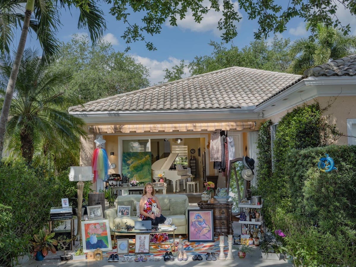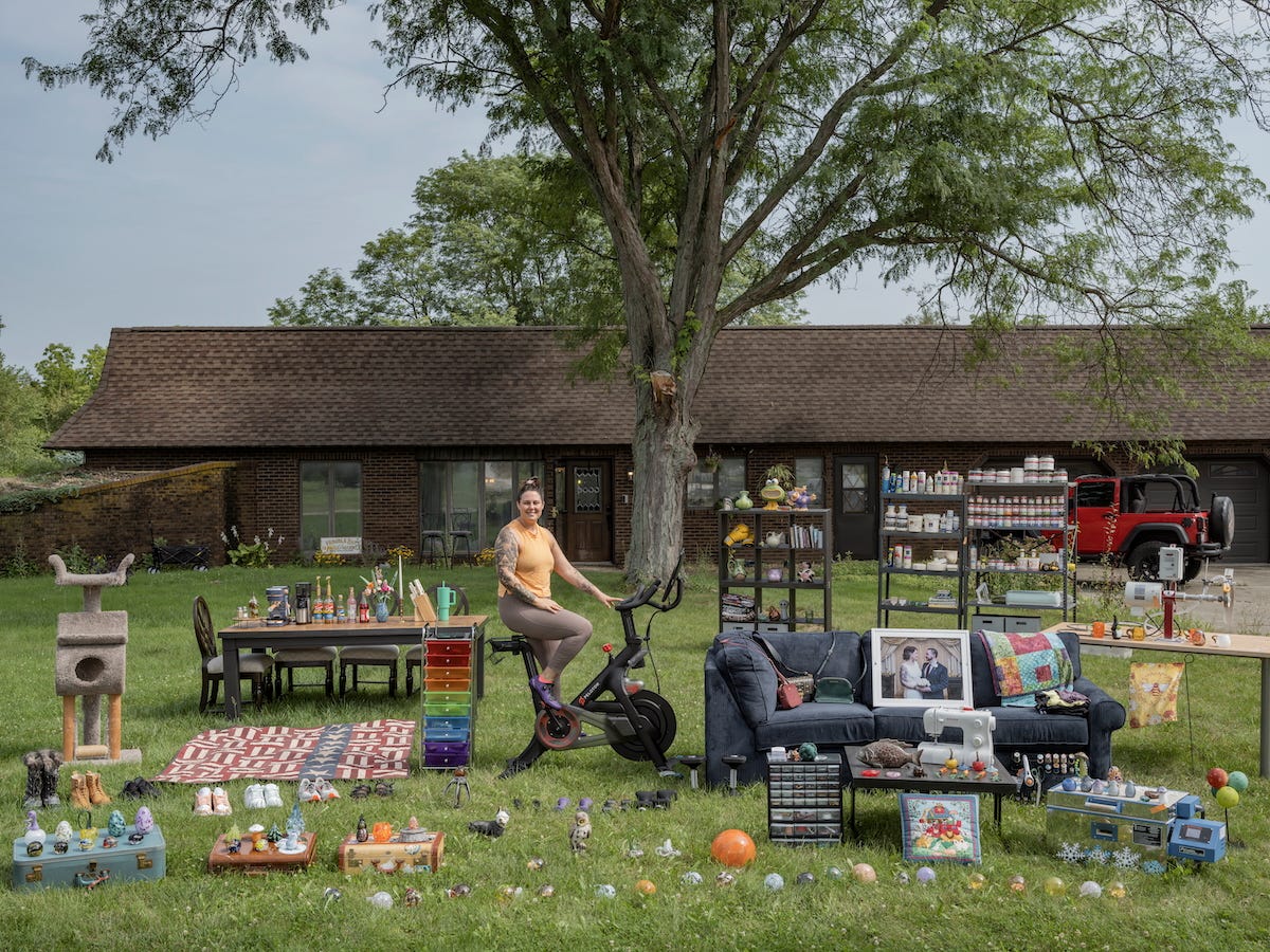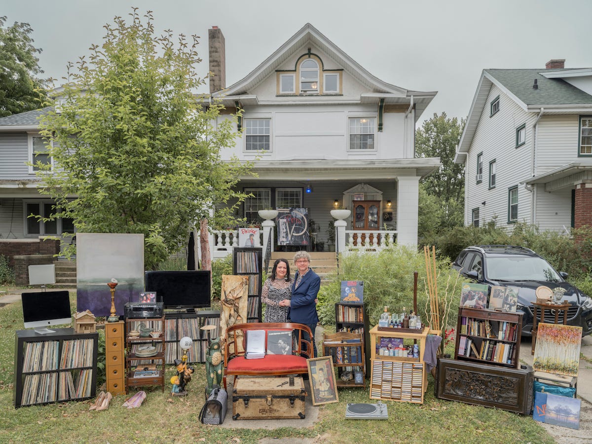 Family Stuff remains a series by Qingjun which explores notions of nostalgia, materialism, and personal connections. Quingjun sets up staged photography as his concept entails having his actors reveal narratives about their past and personal connections. The people within the works are tasked with collecting their most prized possessions, which are often in the form of paintings, vintage photographs of family members, retro clothing, and antiques. Qingjun then curates a sort of exhibition of a person's personal items laid out in front of their home with the homeowner posing along.