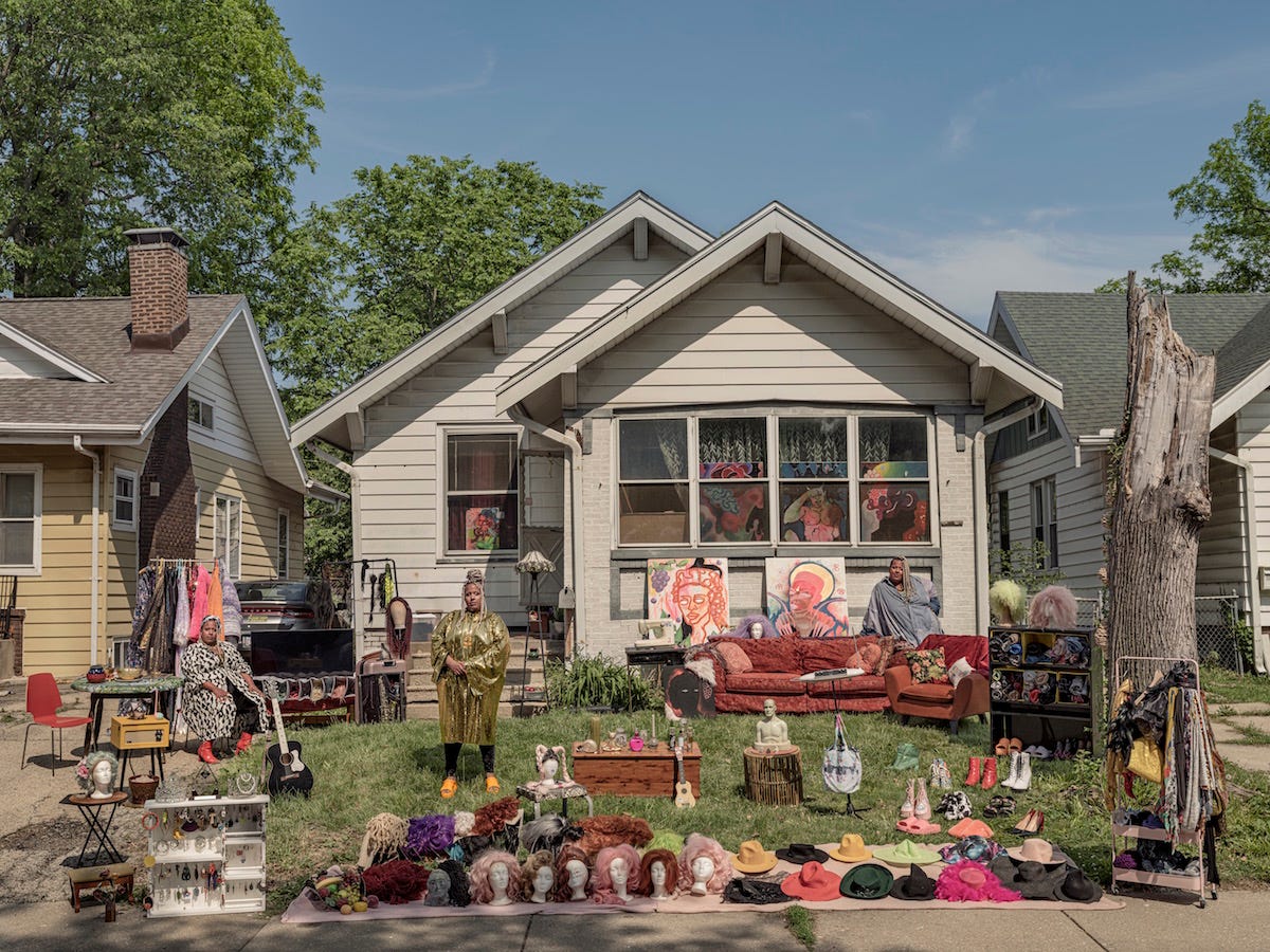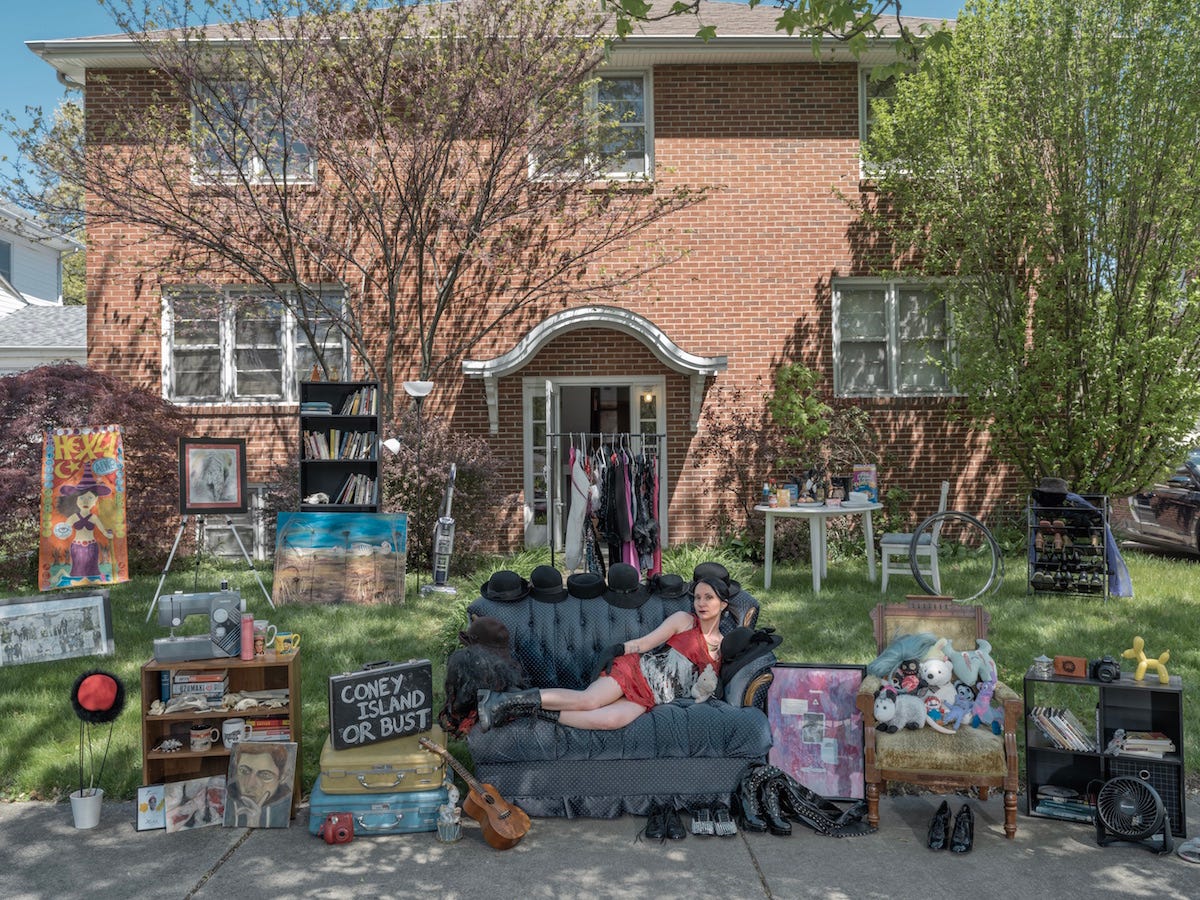 The deep familial connection with personal ‘artifacts’ are not merely notions steeped in attachment to materialism, but rather how strategic objects may invoke memories of past family members, notable experiences, and fine craftsmanship. These series of works invoke a sense of confusion, at least initially. Upon first inspection, the viewer may be forgiven to interpret the photographs as a documentary of a yard sale only to find the objects in the photos are precious and valuable. Upon carefully studying the photographs of the intricate curation of the ‘exhibit’ in front of the people’s homes, the audience will realize these are precisely choreographed and elaborate theatrical staged scenes. Deeply inspired by the vintage photographs of the late Robert Frank, Qingjun explores how the family unit, and specifically the home, defines contemporary identity.