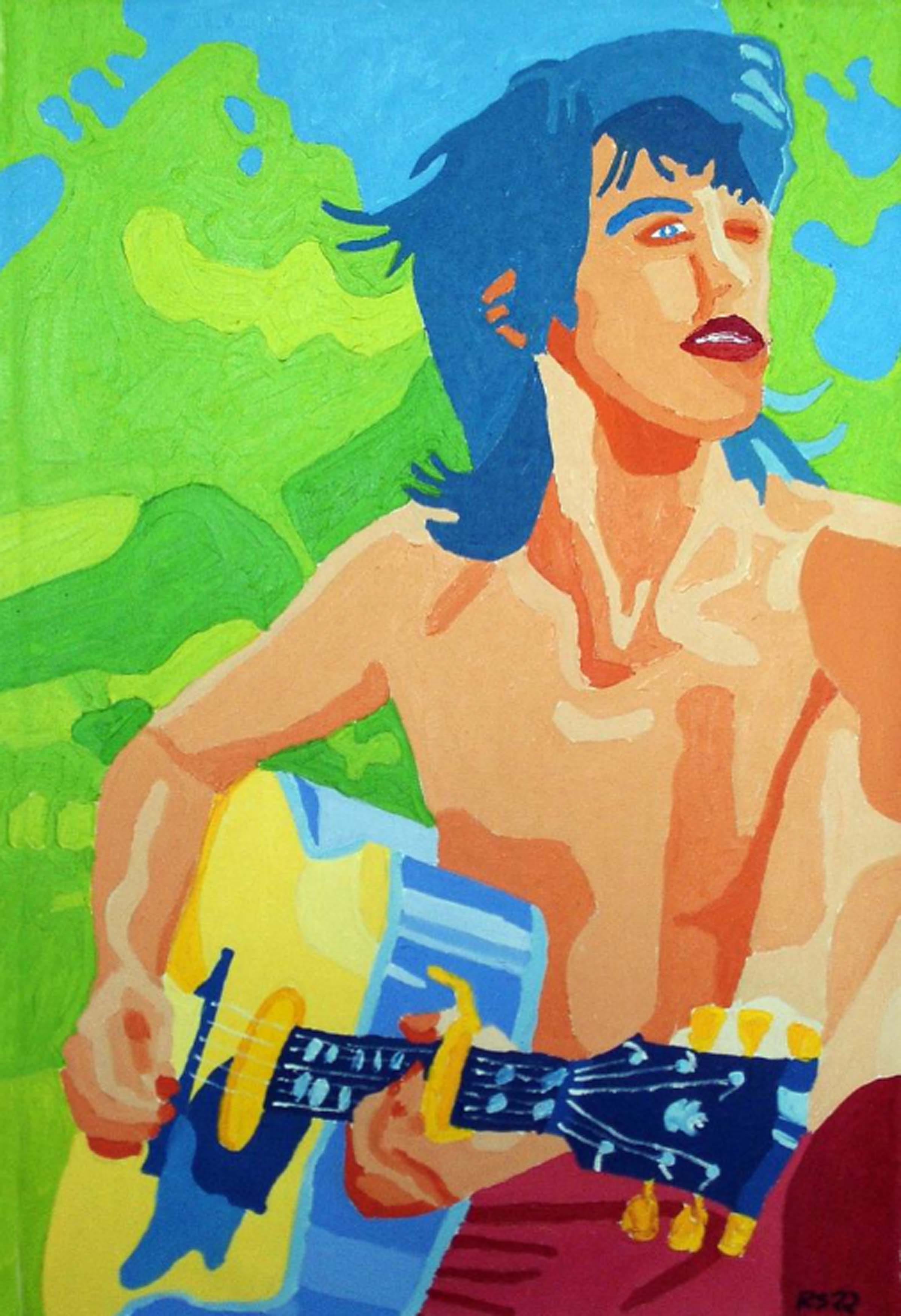 Randall Steinke can be described as a stylish, fun painter who remains highly expressive through cheerful colors and breaking down form into representational yet flattened and stylized geometry. These dynamic figures communicate to the viewer their distinct character through geometric outlines of their shadow and features with wire-like positions. The intricate selective patterns and designed backgrounds add a sense of character and jubilation to the composition and personalities of the figures. Randall Steinke extends an invitation for the viewer to enter his colorful realm of painting as a force of shadowed impressions and orchestrated accentuated form.