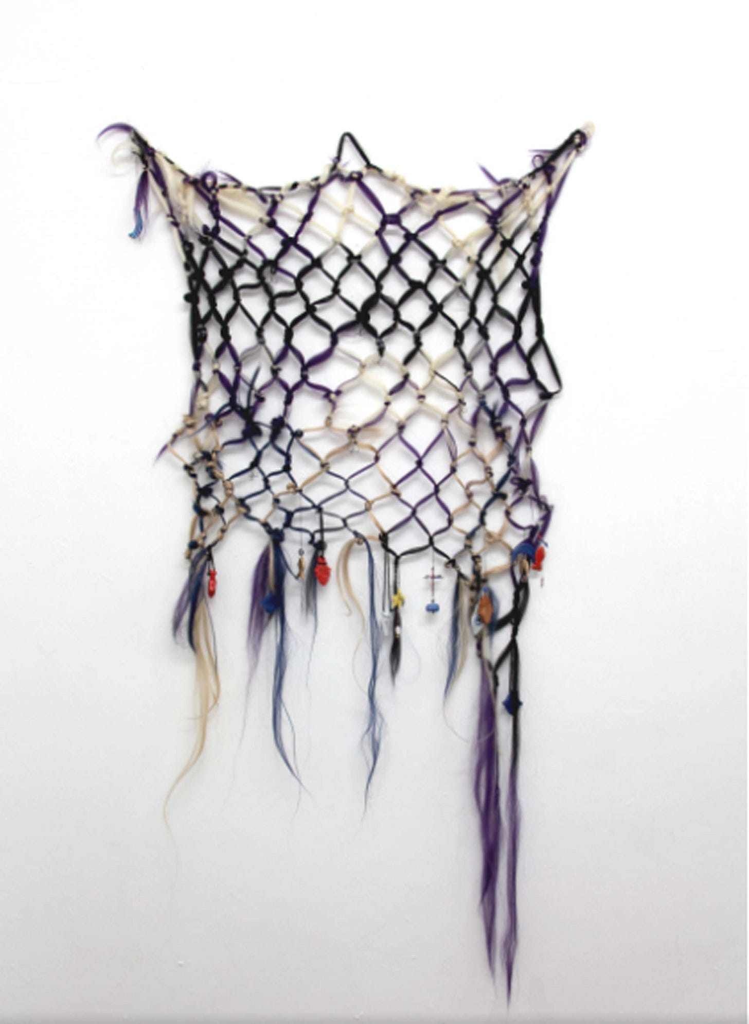 The works stand out for their innovative use of fibers and ability to create complex, layered compositions. She employs various techniques to construct her installations, including weaving, knitting, and embroidery. Her style is both abstract and expressive, often incorporating vibrant colors and dynamic forms. The physicality of the materials and the labor-intensive nature of her process are integral to the meaning of her work, reflecting themes of connection, tension, and resilience. These installations frequently explore ideas of human interconnectedness, the fragility of existence, and the passage of time, using fibers as a metaphor for these concepts.