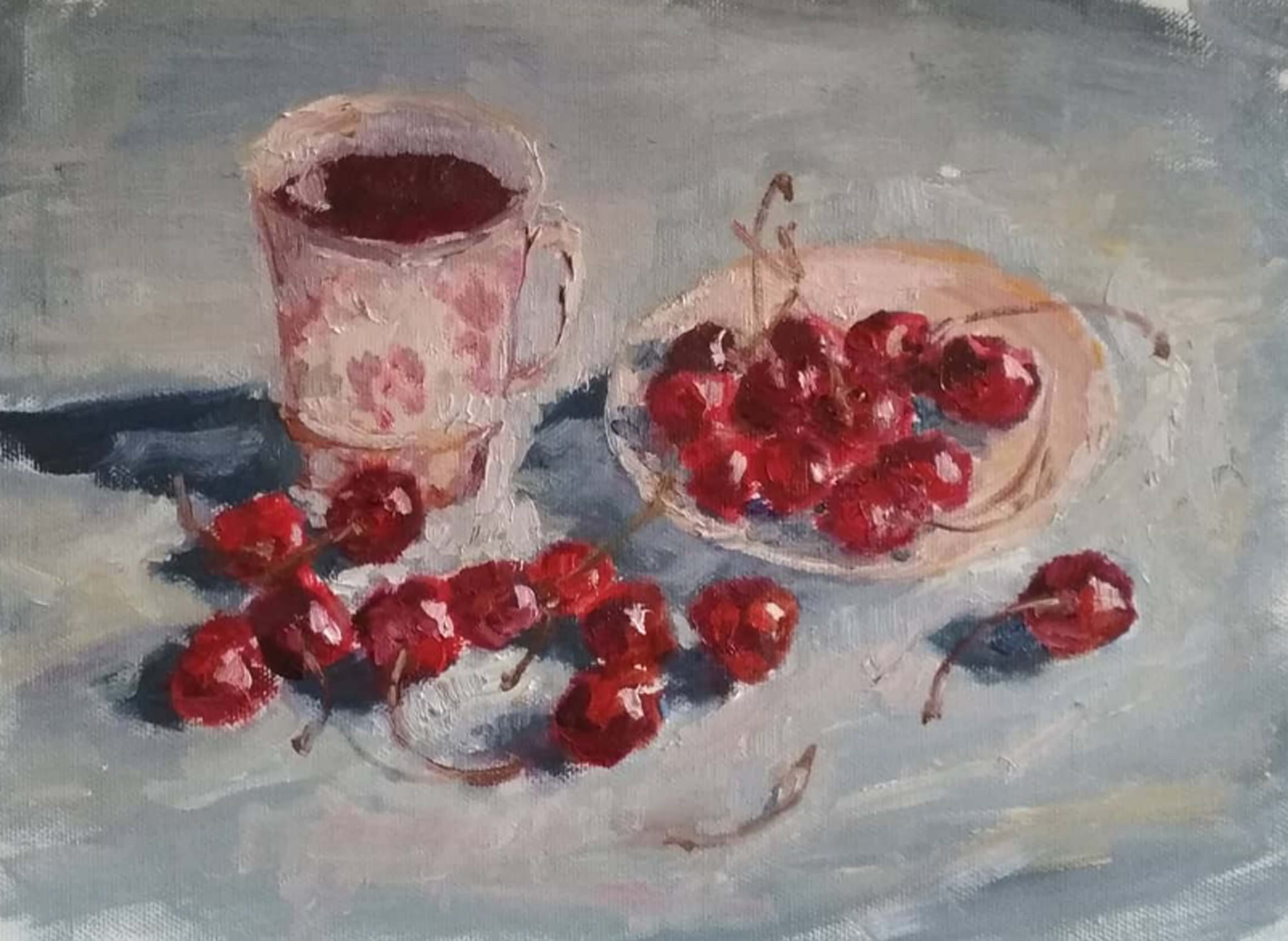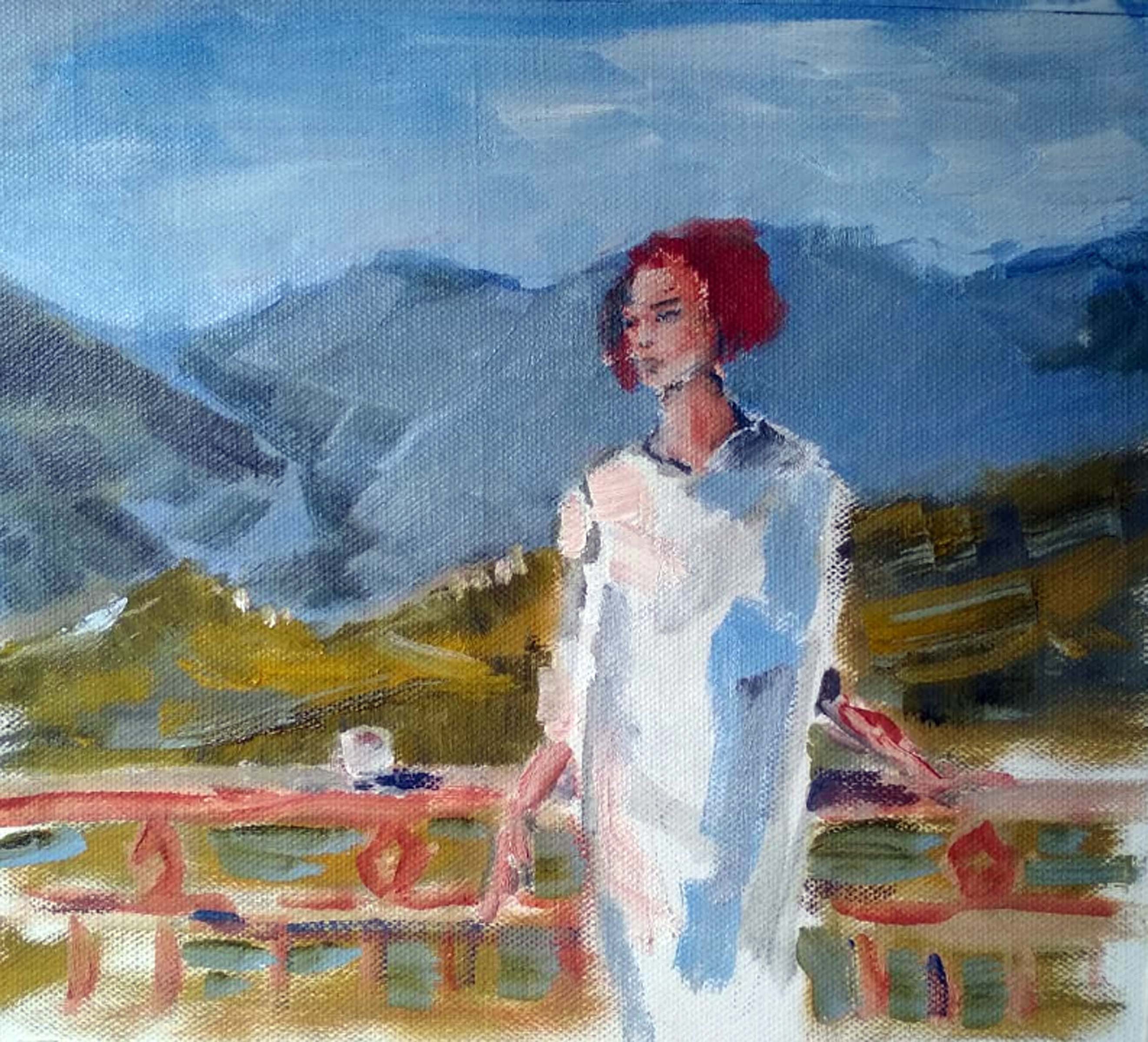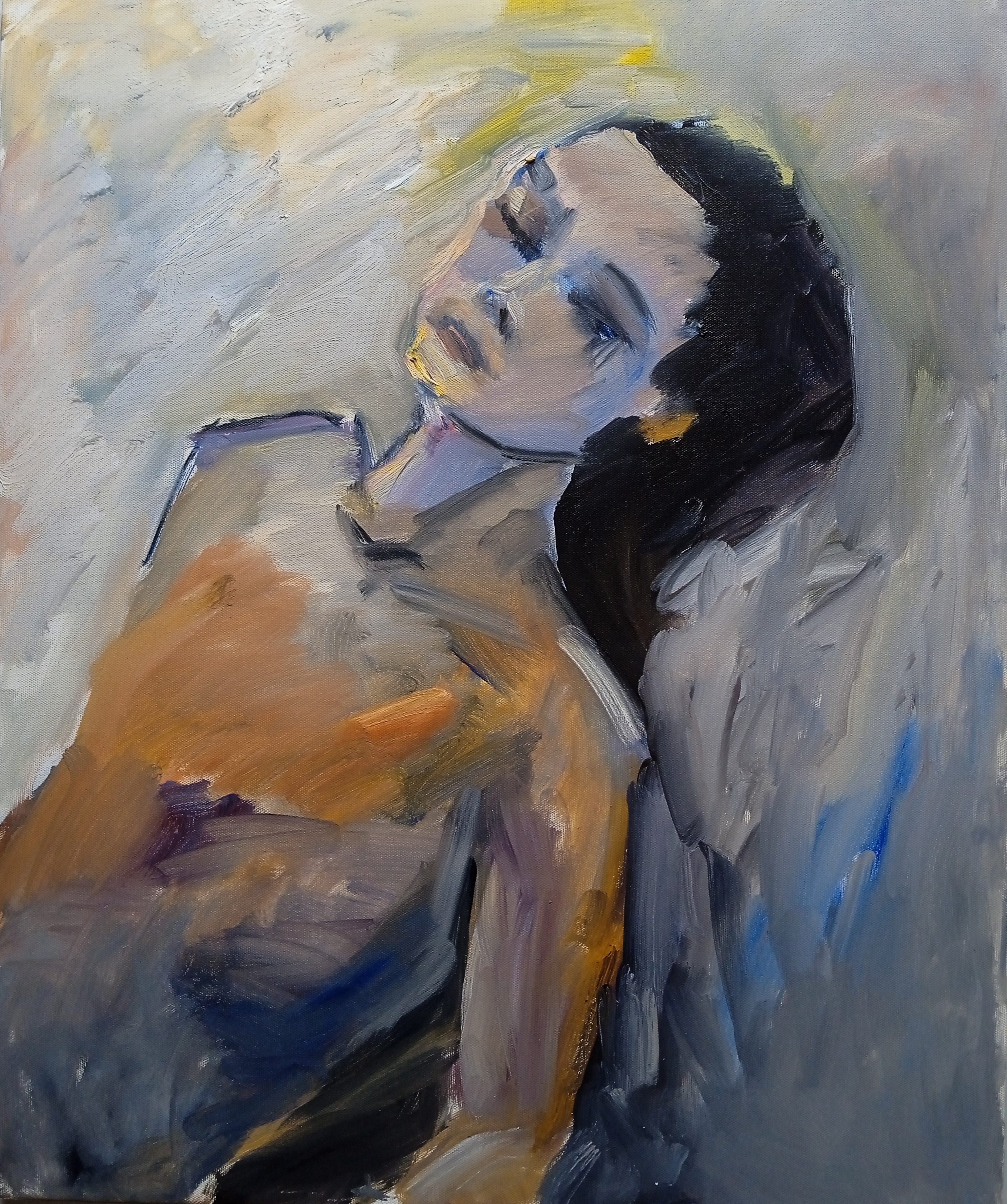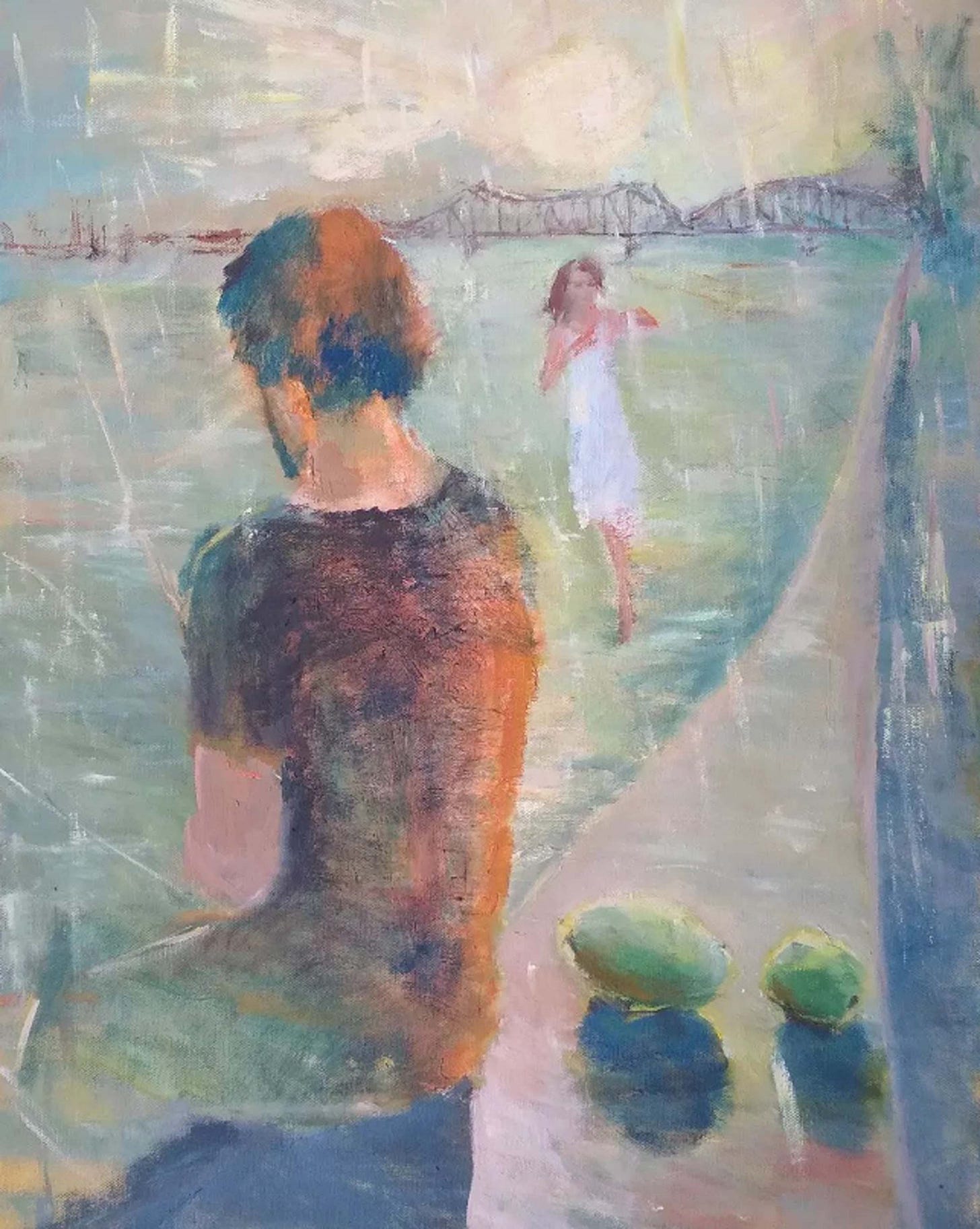 The paintings are extremely loose and painterly with vivid brush strokes which almost reflect impressionist and post-impressionist tendencies. Although the colors in the paintings usually reflect more natural variations rather than expressive bold colors as can be found in the works of the impressionist and post-impressionist masters such as Monet, Van Gogh, and Gauguin. Some of the paintings may come as more expressionistic (such as her self portraits) than other works as Vera clearly works from both direct observation and her imagination. As evidenced by her instagram account, many of the paintings are executed from life as Vera’s practice varies from landscapes to portraits to still lifes. Some of the paintings are imagined scenes such as Mango Rain (top of article) and Lost Dreams 3 (pictured below) which seem to have flattened perspective and fixed distorted figures such as in the post-impressionist paintings of Paul Gauguin.