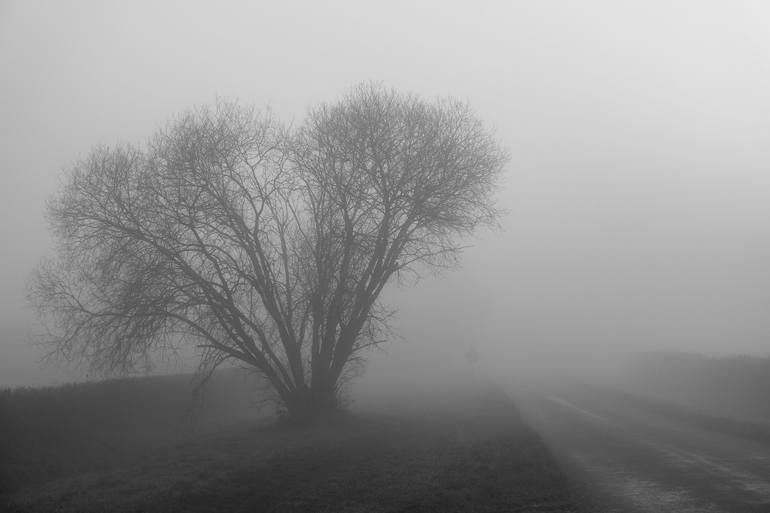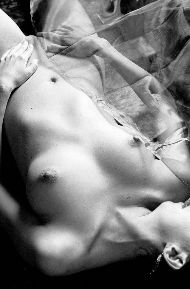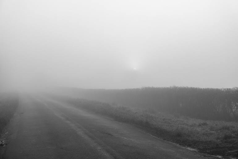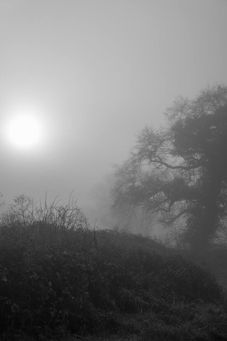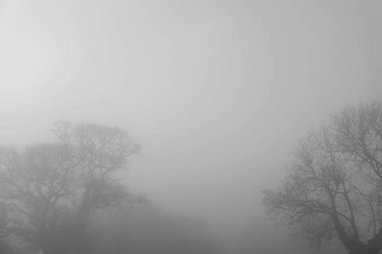 The figurative photography often evokes sensuality in terms of domination, some of the works are far more suggestive than others, and often cropped to ‘tease’ the viewer as to what lies beyond the surface of the lens. His strongest photographs seem to be of isolated trees amongst the mist of fog on the open landscape. The skies in these particular photos appear minimalist and expansive in uniformity while the foliage of the trees seem to blend seamlessly into the open sky. The black and white photography offers a monochromatic unity to these surfaces giving off an impression as if the photographs were captured through breath on surface rather than by camera.