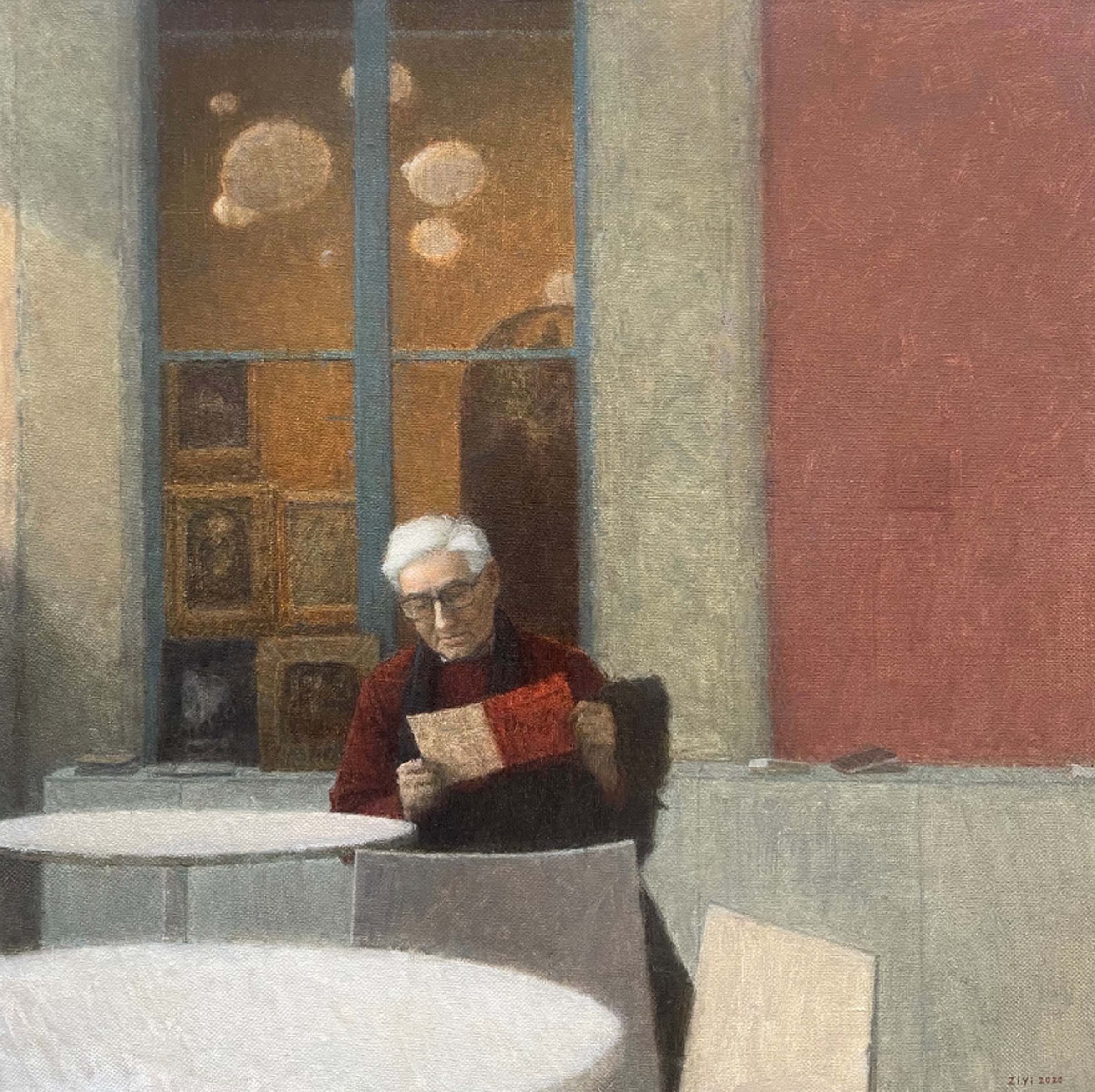 Ziyi works in four formats: figure painting, landscape painting, still life painting and drawings. His most vivid works revolve around landscapes (which also include cityscapes), the reason being the angled compositions are best served within a distant configuration. The landscapes are often portrayed from unusual angles, sometimes high above the subject as if painted from a helicopter or from the top of a mountain. In regards to the figure painting, Ziyi infuses life with his scratchy yet delicately naturalistic brushstrokes, also evident in other types of artworks. There remains almost no linear qualities as forms and subjects gradually soften with subtle gradations of color.